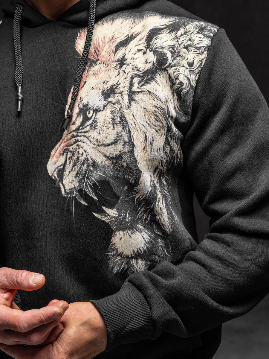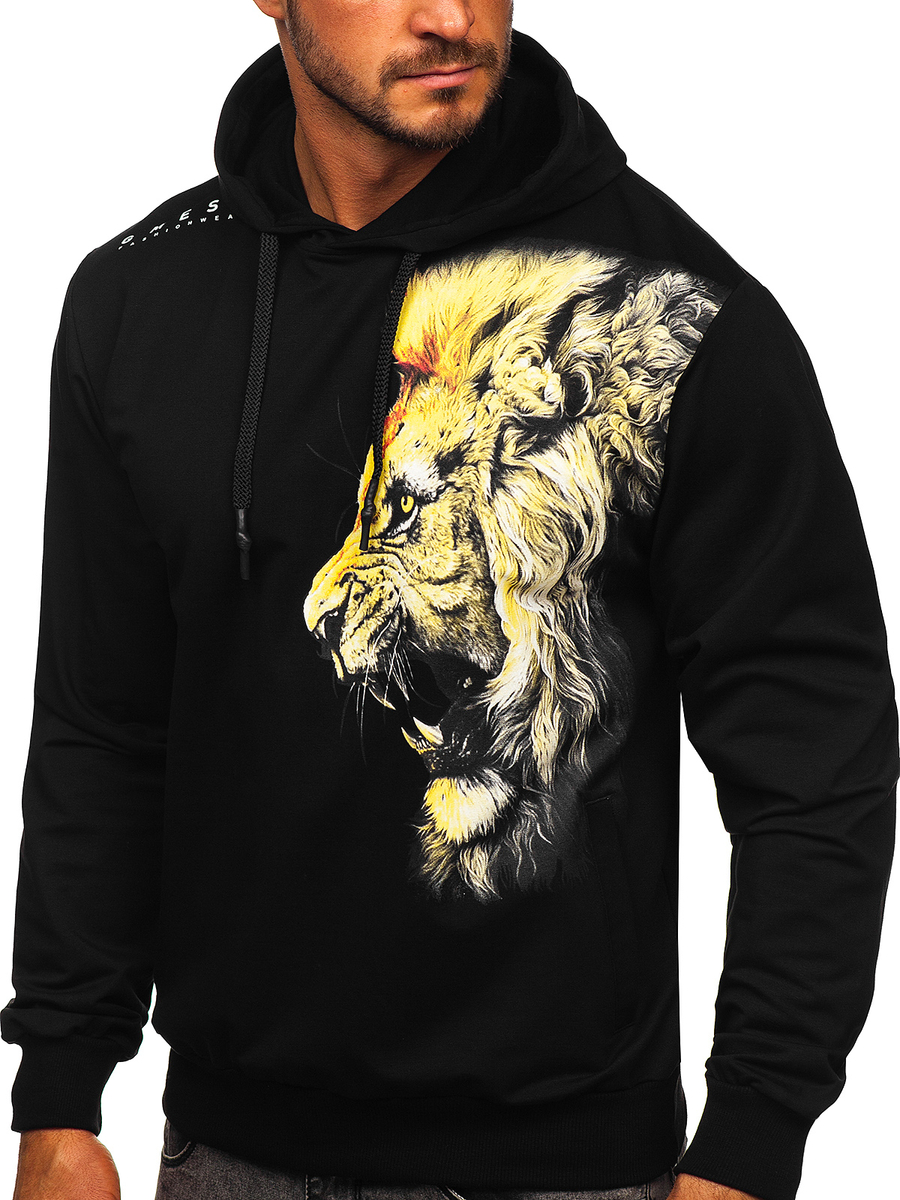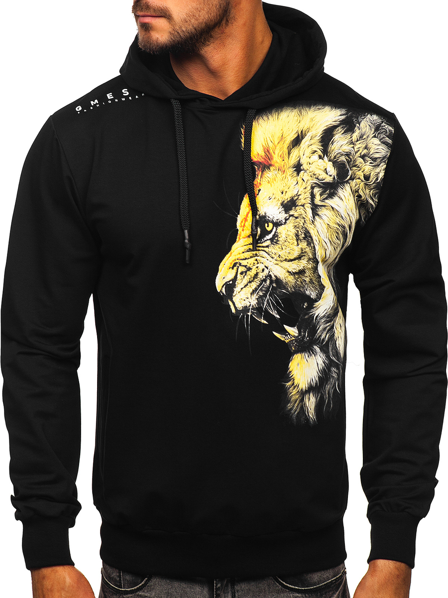 A felhasználók véleménye Mintás férfi pulcsi kapucnival fekete színben Bolf 6136