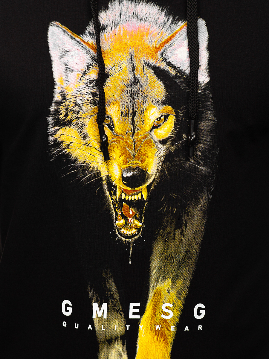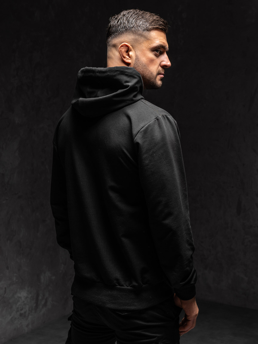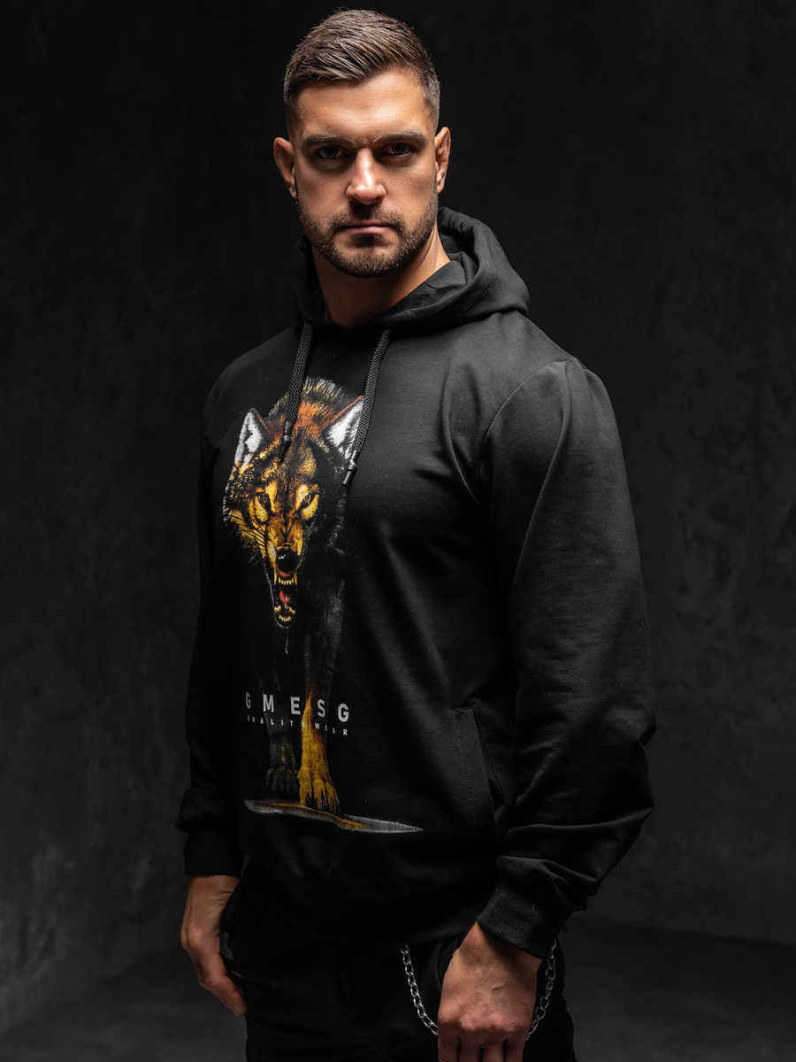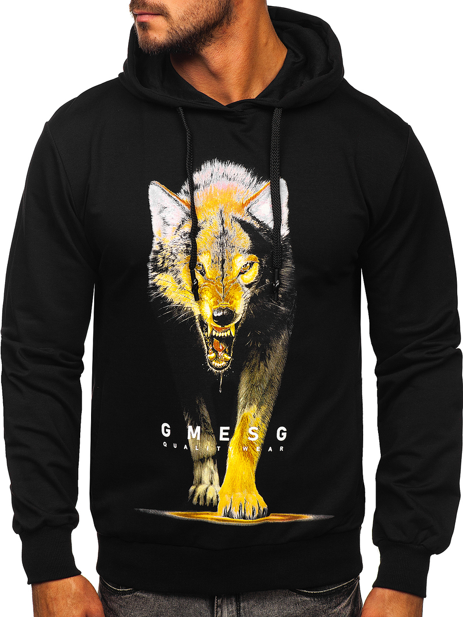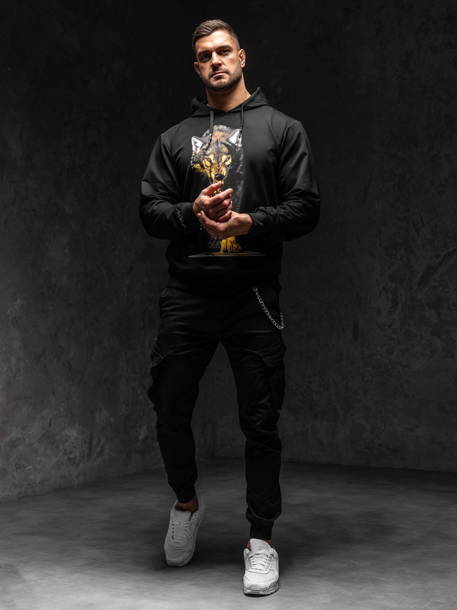 A felhasználók véleménye Mintás férfi pulcsi kapucnival fekete színben Bolf 6141
