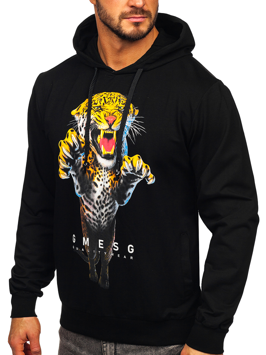 A felhasználók véleménye Mintás férfi pulcsi kapucnival fekete színben Bolf 6139