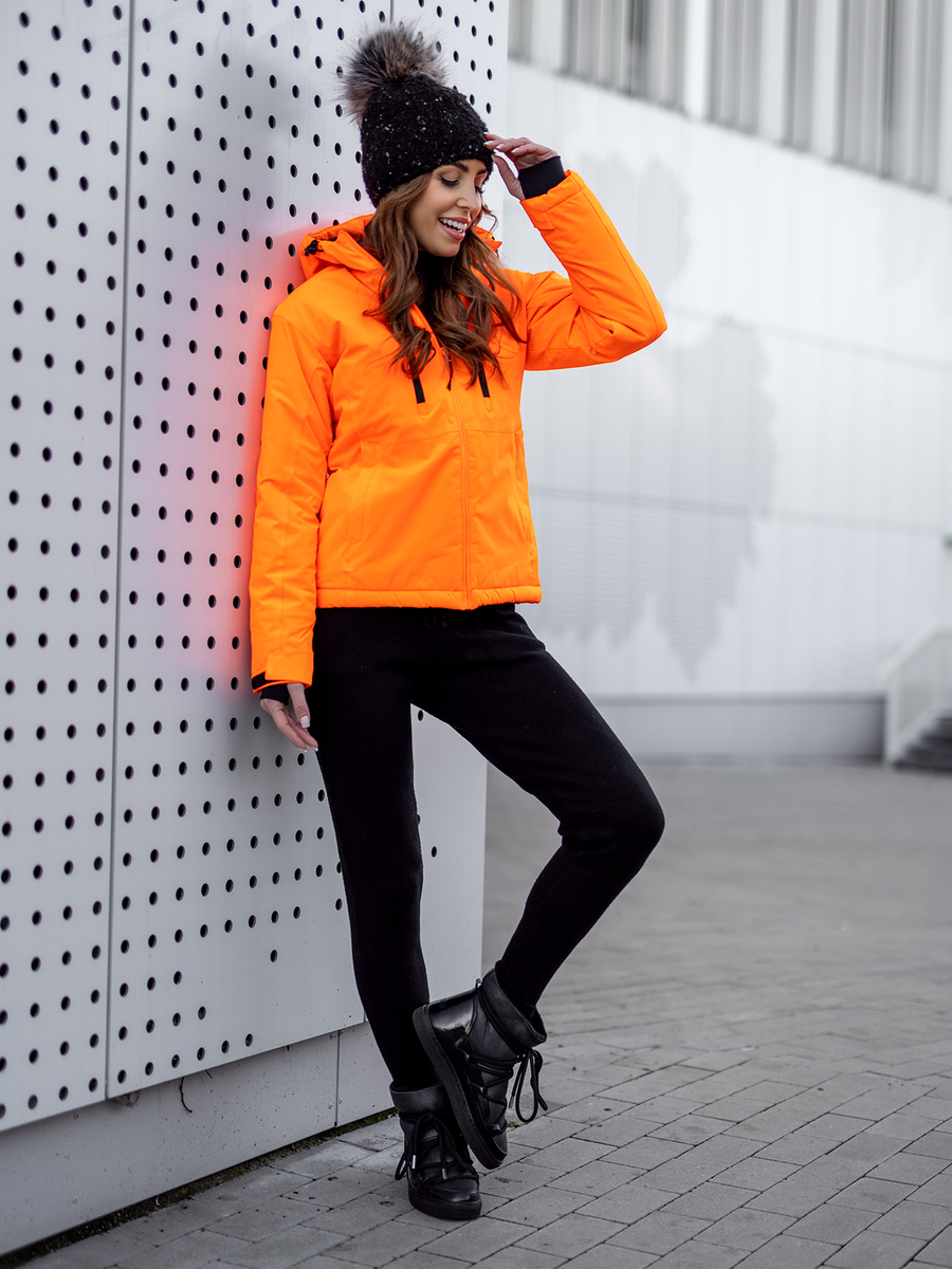 A narancssárga színű, téli női sídzseki -Bolf HH012- egy meleg téli kabát, sportos hangulattal. Meleg és praktikus, ráadásul nagyon mutatós a remek színekben. Minden nőnek elnyeri a tetszését, aki követi a divat trendeket. Cipzározható. Nem levehető, állítható kapucnival. Minta nélküli dzseki, mely vastag, melegen tartó anyagból készült. A termék magas, cipzározható állógallérral rendelkezik, amely hatékonyan véd még a hidegebb és a szelesebb napokon is. Dzseki, két oldalsó, patentos zsebbel, két cipzározható mellzsebbel és egy extra, cipzározható kis zsebbel a bal ujjon. Ezen kívül egy praktikus, cipzáras belső zsebbel is rendelkezik, amelyben elrejtheted a mobiltelefont vagy a pénztárcát. Az ujjak tépőzárral állíthatók, belülről rugalmas szűkítővel ellátott. Szintetikus pehellyel bélelt dzseki, ideálisan beválik a legfagyosabb napokon is.