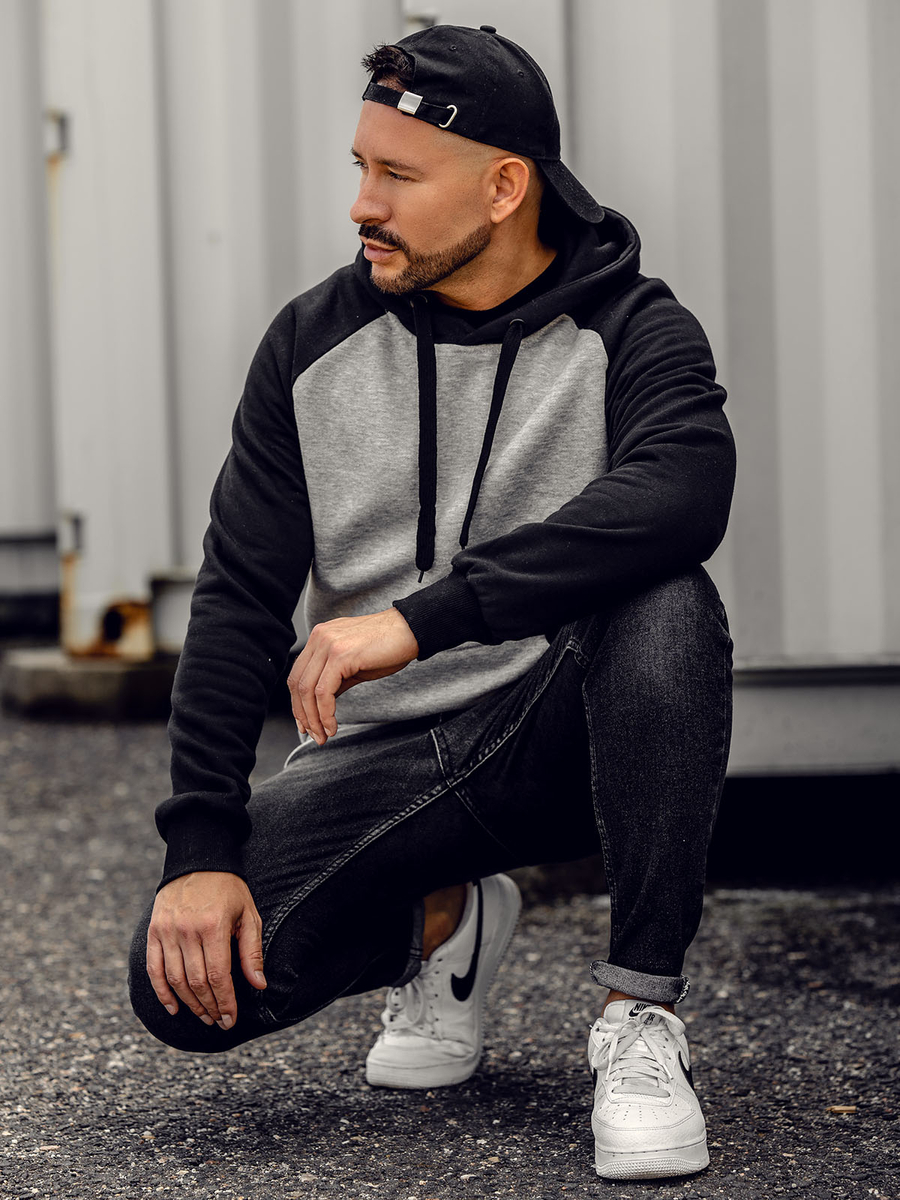 A felhasználók véleménye Férfi pulcsi kapucnival szürke színben Bolf LM77002