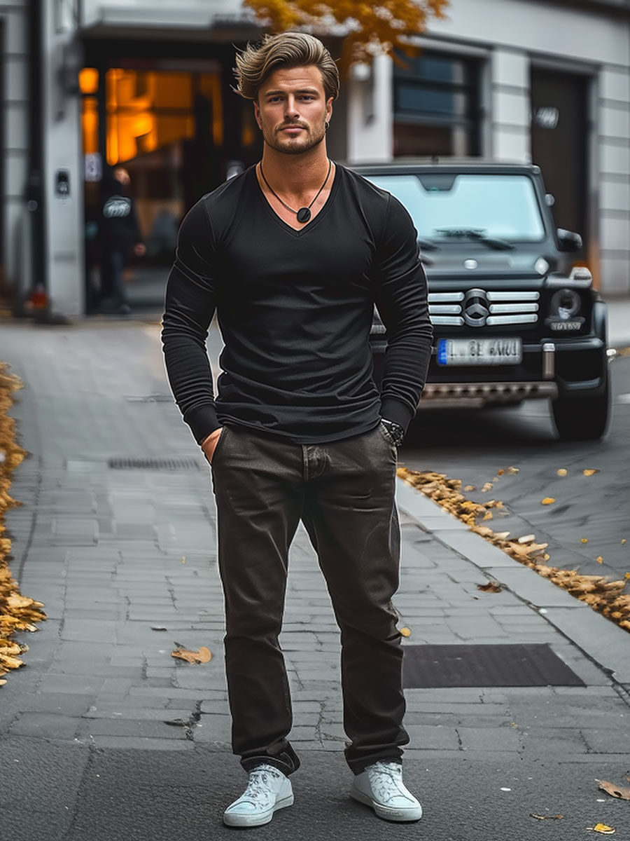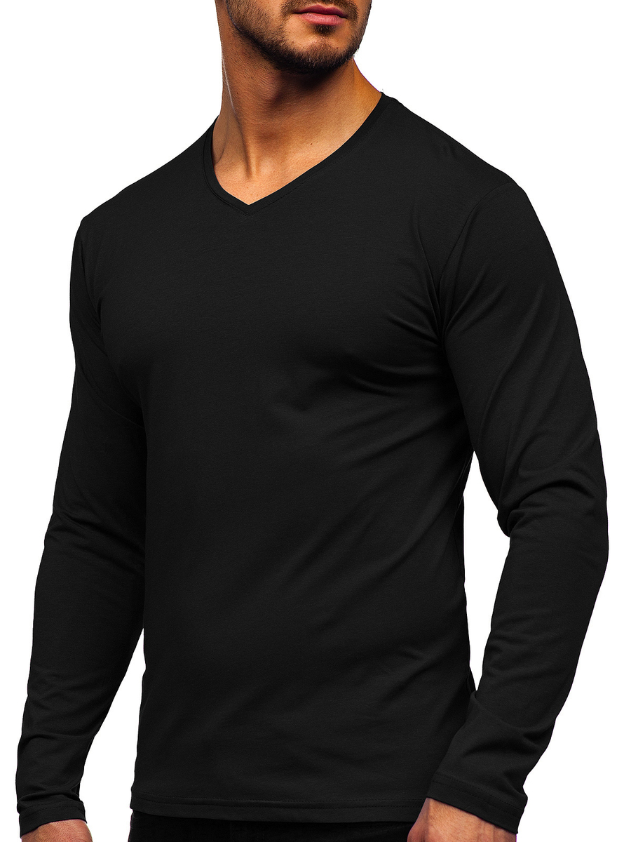 A felhasználók véleménye Férfi hosszú ujjú felső minta nélkül V-nyakú fekete színben Bolf 172008