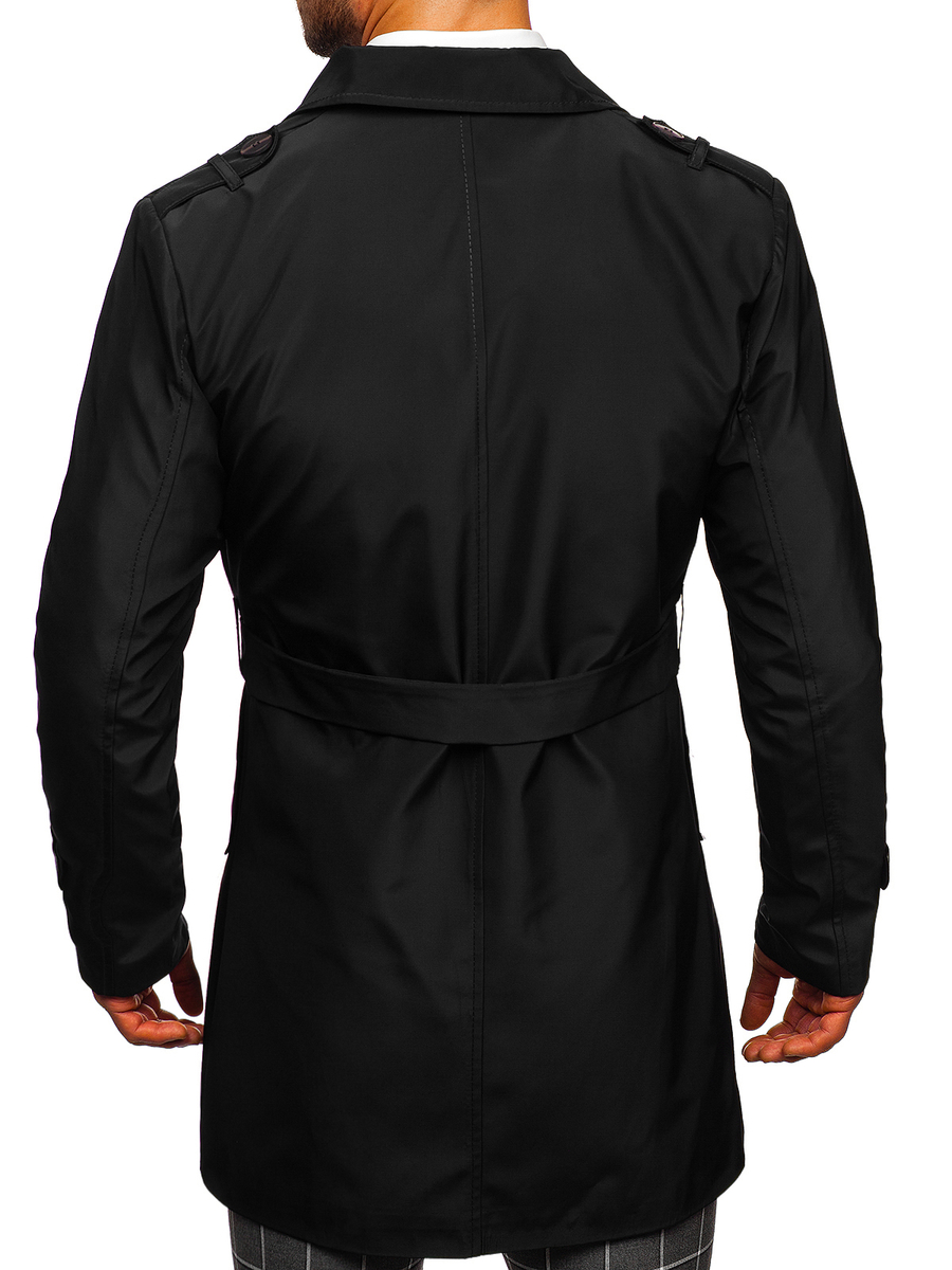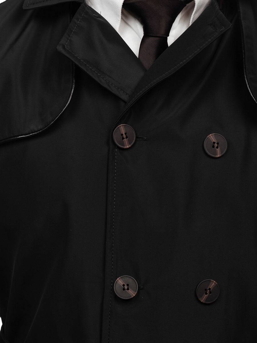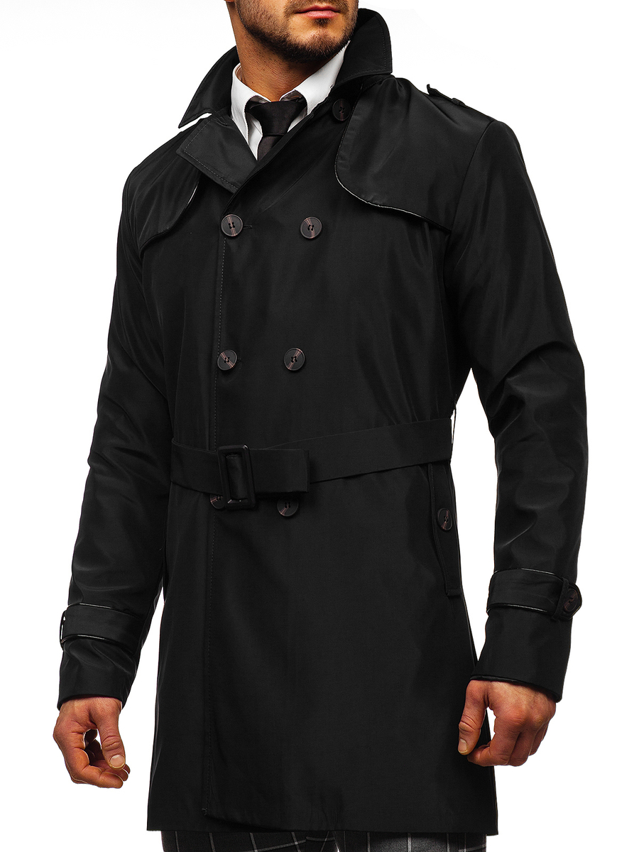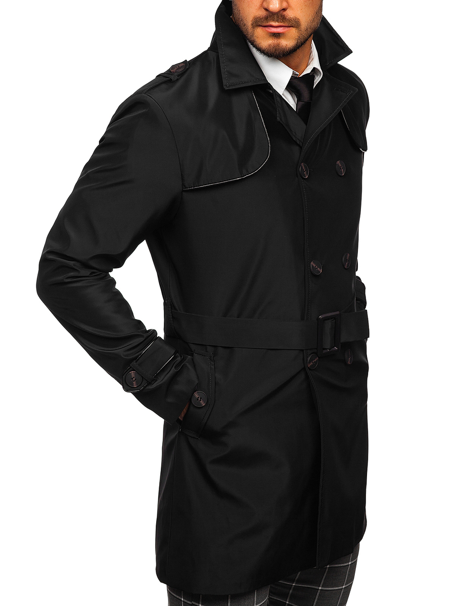 Fekete színű, kétsoros férfi ballonkabát magas gallérral és övvel -Bolf 0001- nagyszerű választás azoknak, akik értékelik a klasszikus eleganciát. Kétsoros kabát, egy must have minden stílusos férfi szekrényében. Az termék gombolható és a szetthez öv is tartozik, így nagyszerűen zár, miáltal melegen tart. Rewers gallér, további gombolható zárral. A termék praktikus eleme a két zár nélküli külső zseb. Dekoratív gombbal zárható zsebbel, mely elegáns jelleget biztosít. A kabát további funkcionális eleme a belső zseb, amelyben különféle apró tárgyaidat tárolhatod. Dekoratív gombokkal az ujjjak végén.