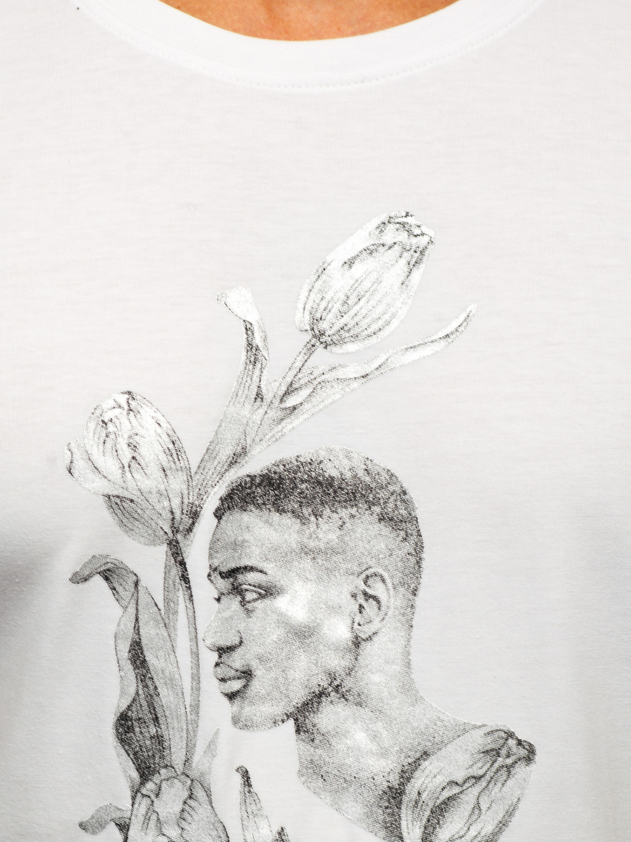 Mintás, férfi póló fehér színben -Bolf Y70052- nagyszerű ajánlat azoknak a férfiaknak, akik értékelik az eredeti stílust. Póló, egyedi nyomattal elől. Kerek dekoltázzsal rendelkezik. A hétköznapi stílus kedvelőinek. Megfelelő városi kiruccanásra, találkozásra az ismerősökkel vagy sétára. 65%-ban pamutból és 35% poliészterből készült, ami rugalmassá teszi őt, nagyszerűen alakra szabott. Tökéletes párosítást alkot farmerral és joggerrel.
