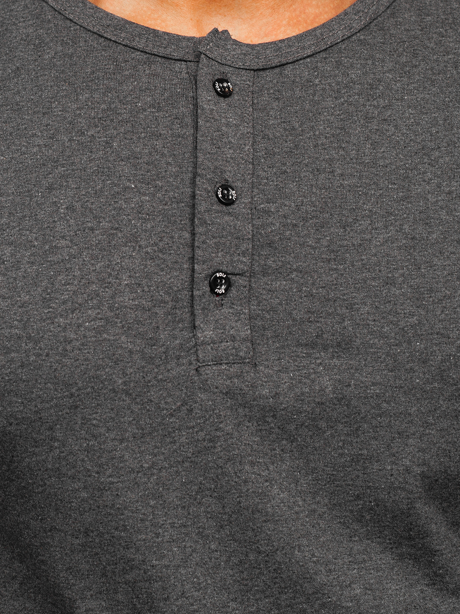 Antracitszürke színű, henley típusú, hosszú ujjú felső, ideális a hétköznapokra. Pamut, basic típusú a dekoltázsnál jellegzetes gombos zárral. Férfi antracit hosszú ujjú felsőt Bolf párosítsd farmerrel, chinó nadrággal vagy joggerrel. Viseld dzsekivel, vagy pulcsival.