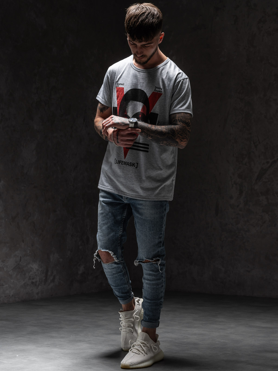 A felhasználók véleménye Mintás férfi póló szürke színben Bolf KS2552