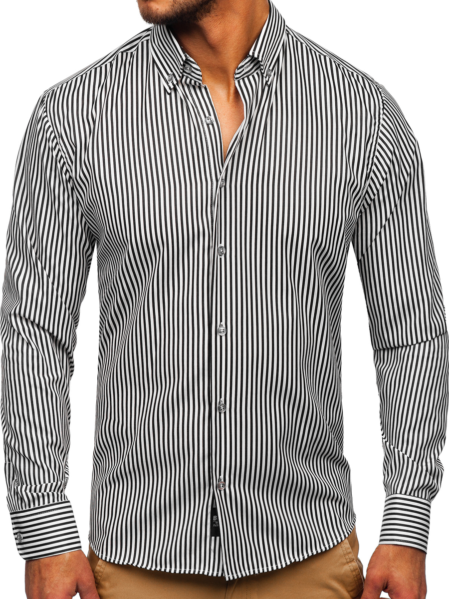 A felhasználók véleménye Hosszú ujjú csíkos férfiing fekete színben Bolf 20726