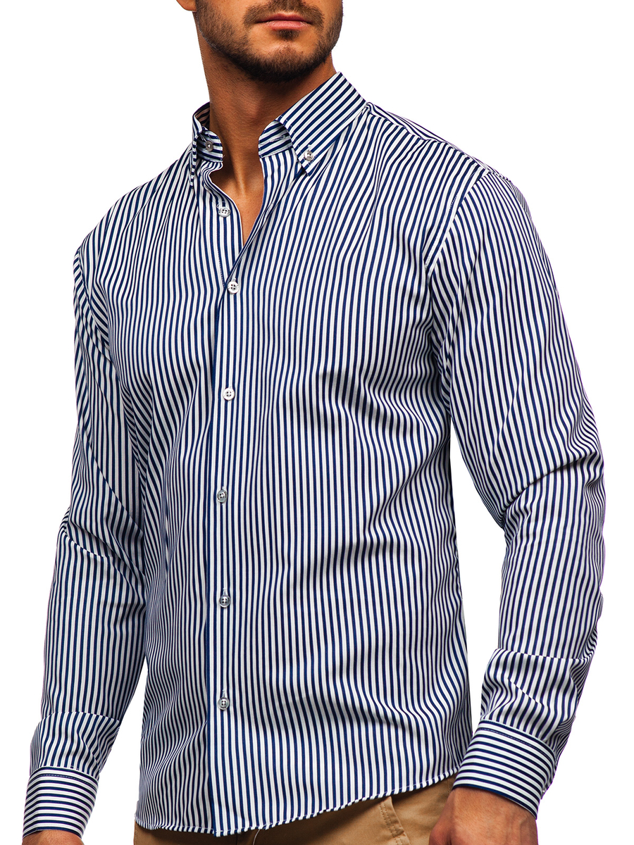 A felhasználók véleménye Hosszú ujjú csíkos férfiing gránátkék színben Bolf 20726