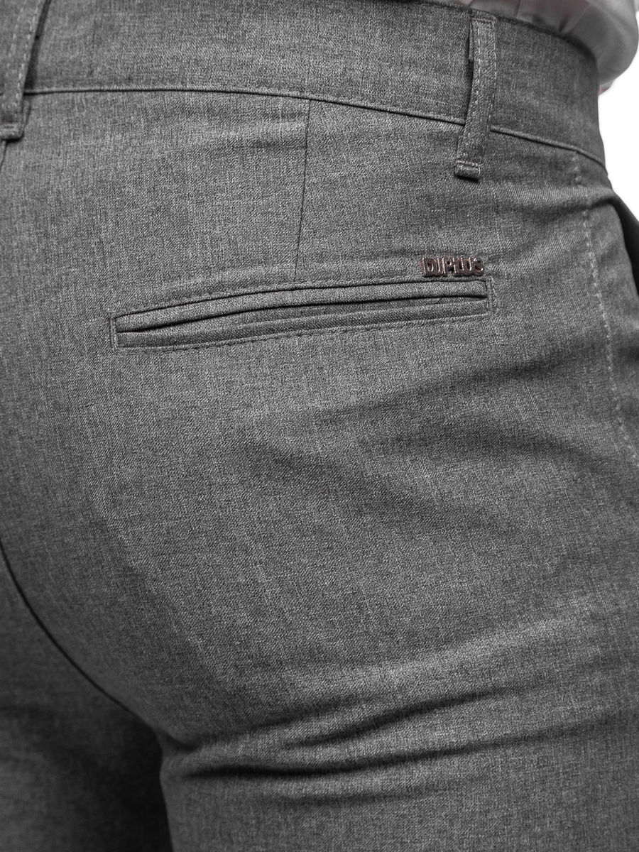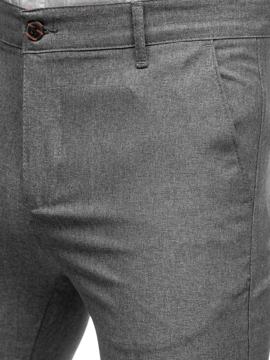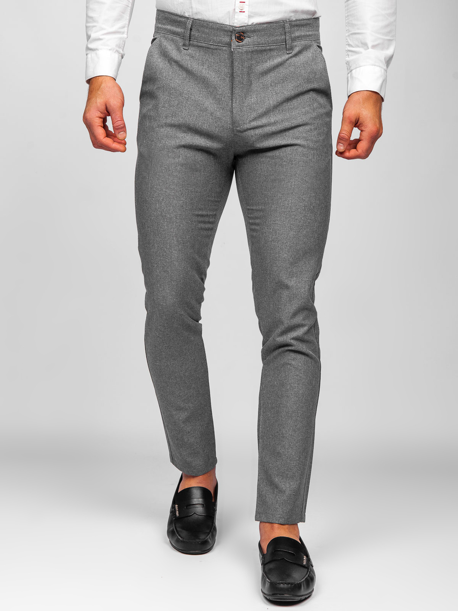 Férfi chino vászonadrág szürke színben, Bolf 0016, a klasszikus és az elegáns stilizációkban is megállja a helyét. Klasszikus színű chino, egy must have minden férfi szekrényében.. Derékban cipzáras és gombos. A termék praktikus elemei a két zseb elöl és két zseb hátul. Nadrág, tőkéletes a hétköznapokra. 100% pamutból készül, ennek köszönhetően kellemes a tapintása. Perfect matchet biztosít inggel és zakóval vagy pulóverrel.