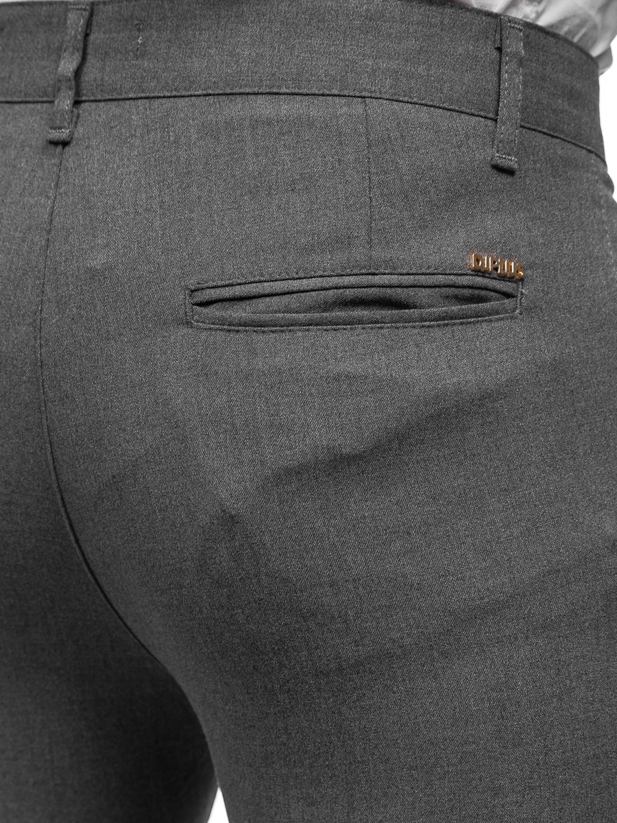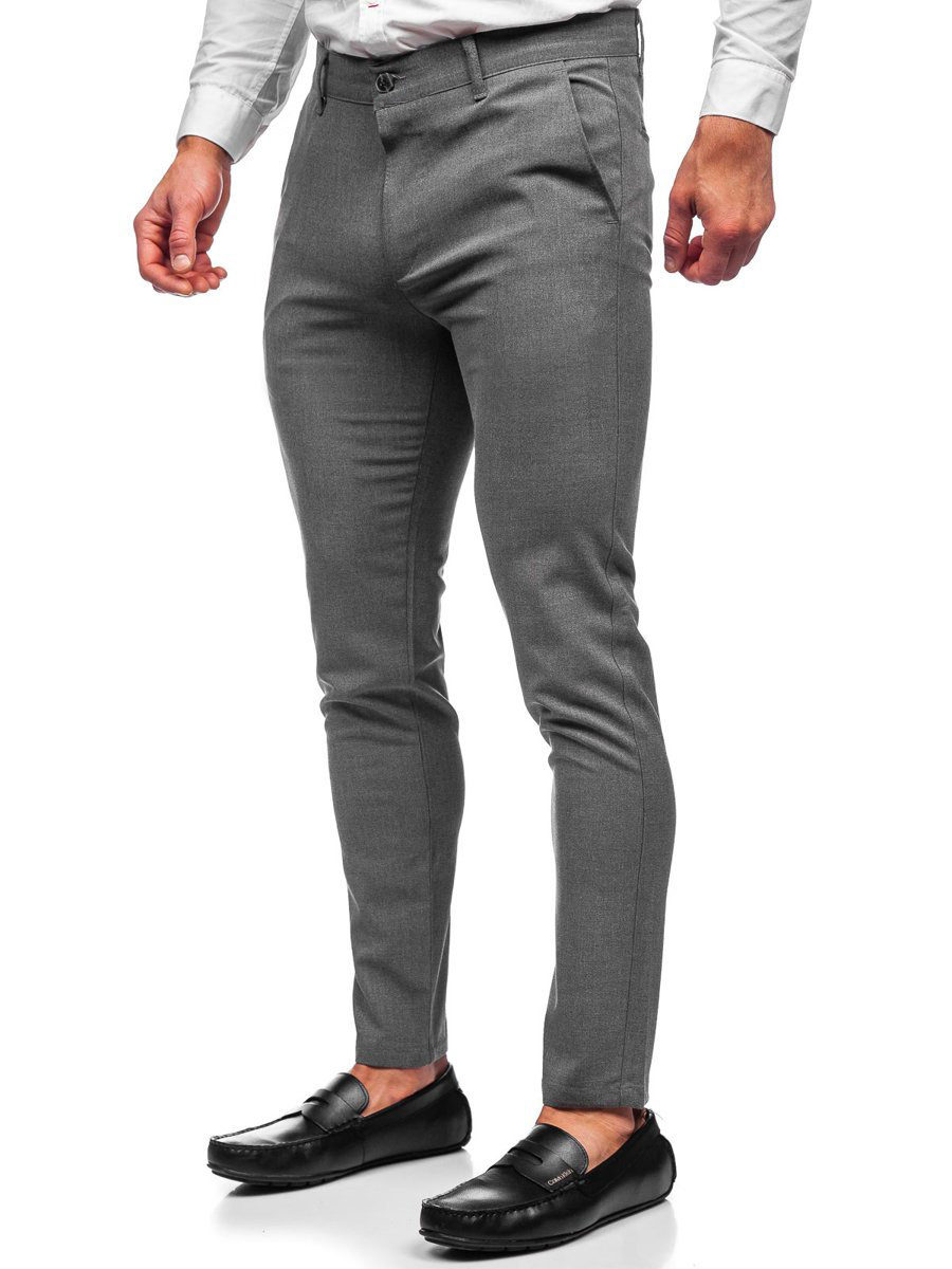 Férfi chino vászonadrág grafit színben, Bolf 0016, a klasszikus és az elegáns stilizációkban is megállja a helyét. Klasszikus színű chino, egy must have minden férfi szekrényében.. Derékban cipzáras és gombos. A termék praktikus elemei a két zseb elöl és két zseb hátul. Nadrág, tőkéletes a hétköznapokra. 100% pamutból készül, ennek köszönhetően kellemes a tapintása. Perfect matchet biztosít inggel és zakóval vagy pulóverrel.