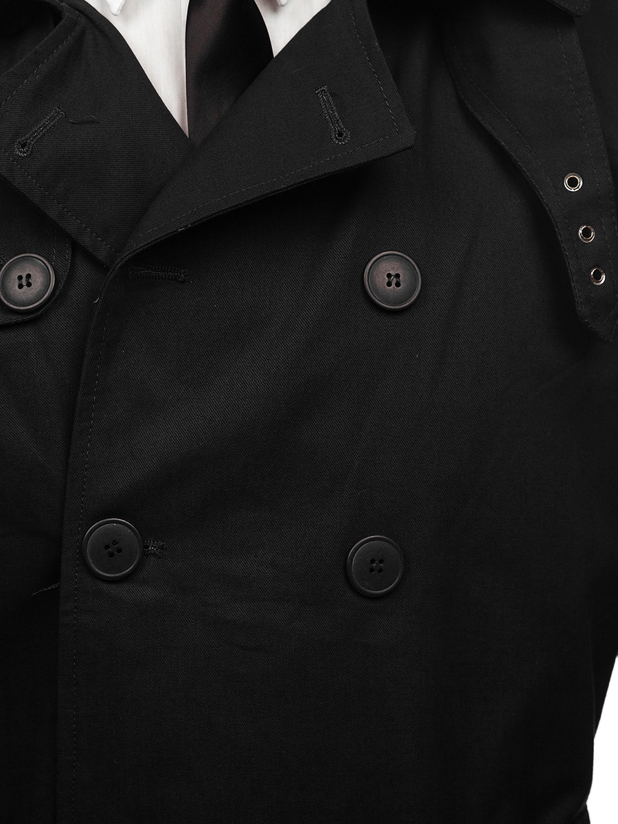Fekete színű, kétsoros férfi ballonkabát magas gallérral és övvel -Bolf 5569- eleganciát és sikket kölcsönöz minden férfinak. Kétsoros ballonkabát, minden férfi ruhásszekrényének kötelező darabja. Gombolható termék, a szetthez öv tartozik. Rewers gallérral, további gombolható zárral, tökéletesen vég a hideg elől. A kabát hasznos elemei a két külső, zár nélküli zseb és egy belső zseb. Az ujjakon dekoratív zárral rendelkezik. Ez a kabátot a casual és a félelegáns stílust kedvelőknek ajánljuk. 100% pamutból készült, nagyszerűen mutat inggel és vászonnadrággal.