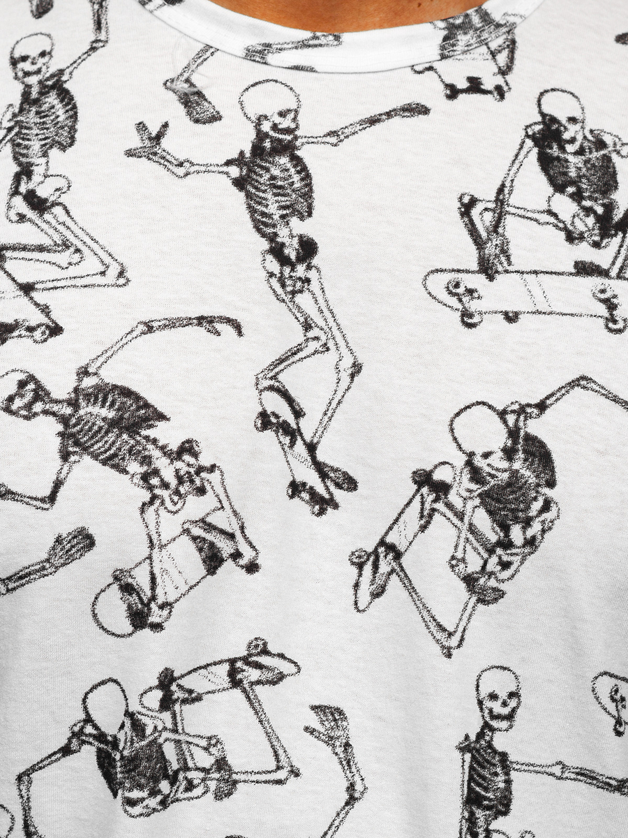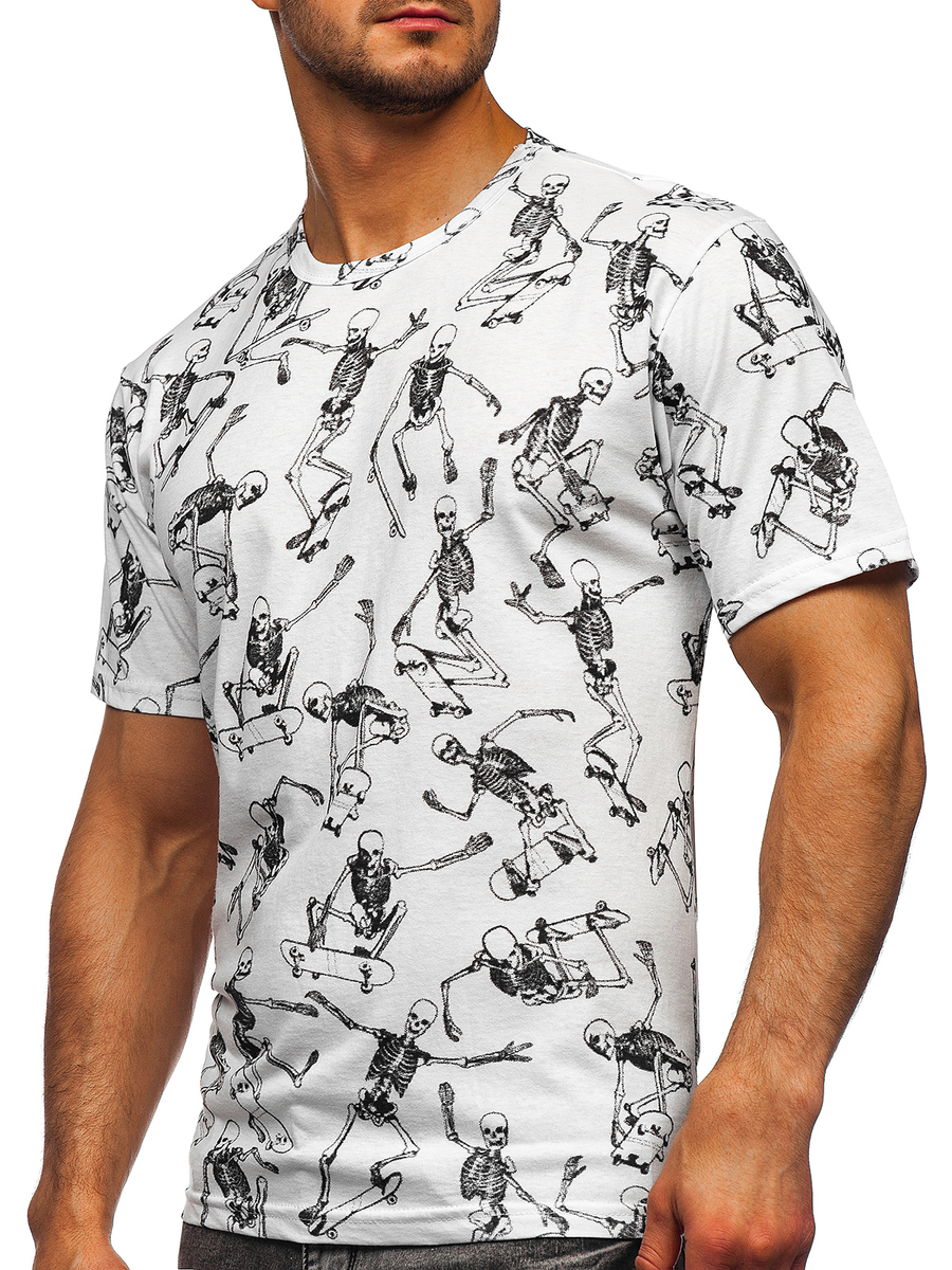 Mintás férfi póló fehér színben, Bolf 14916, ideális a hétköznapi stilizációkhoz.. Mintás póló kerek dekoltázzal, különböző alkalmakra ideális. Séta? Találkozás az ismerősökkel? Városi kiruccanás? Az ilyen típusú póló tökéletes választás különböző alkalmakra. 100 %-ban pamutból készült termék, ennek köszönhetően kellemes tapintású és rugalmas. Ez a póló nagyszerűen mutat farmerral, chinóval és joggerrel.