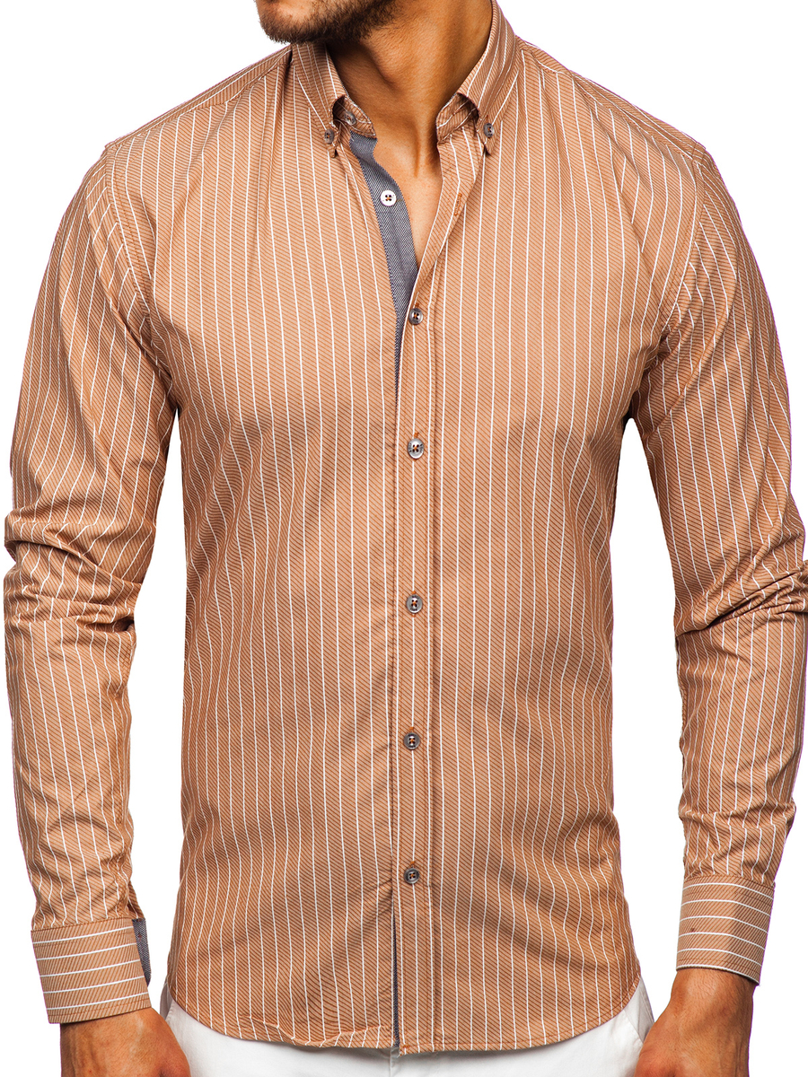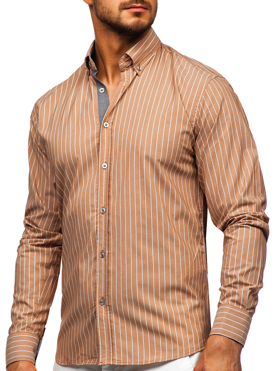 A felhasználók véleménye Hosszú ujjú csíkos férfiing barna színben Bolf 20731-1