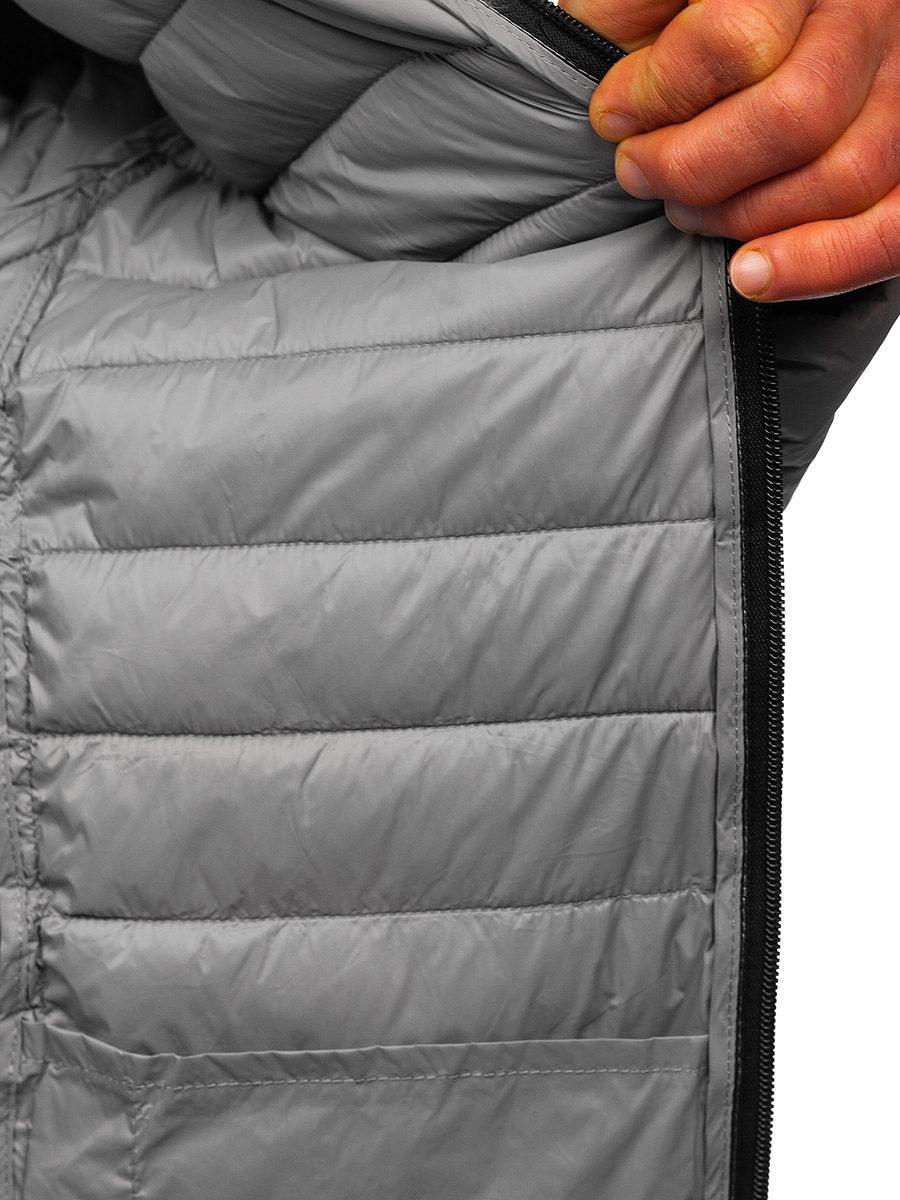 A felhasználók véleménye Átmeneti steppelt férfi dzseki szürke színben Bolf 13021