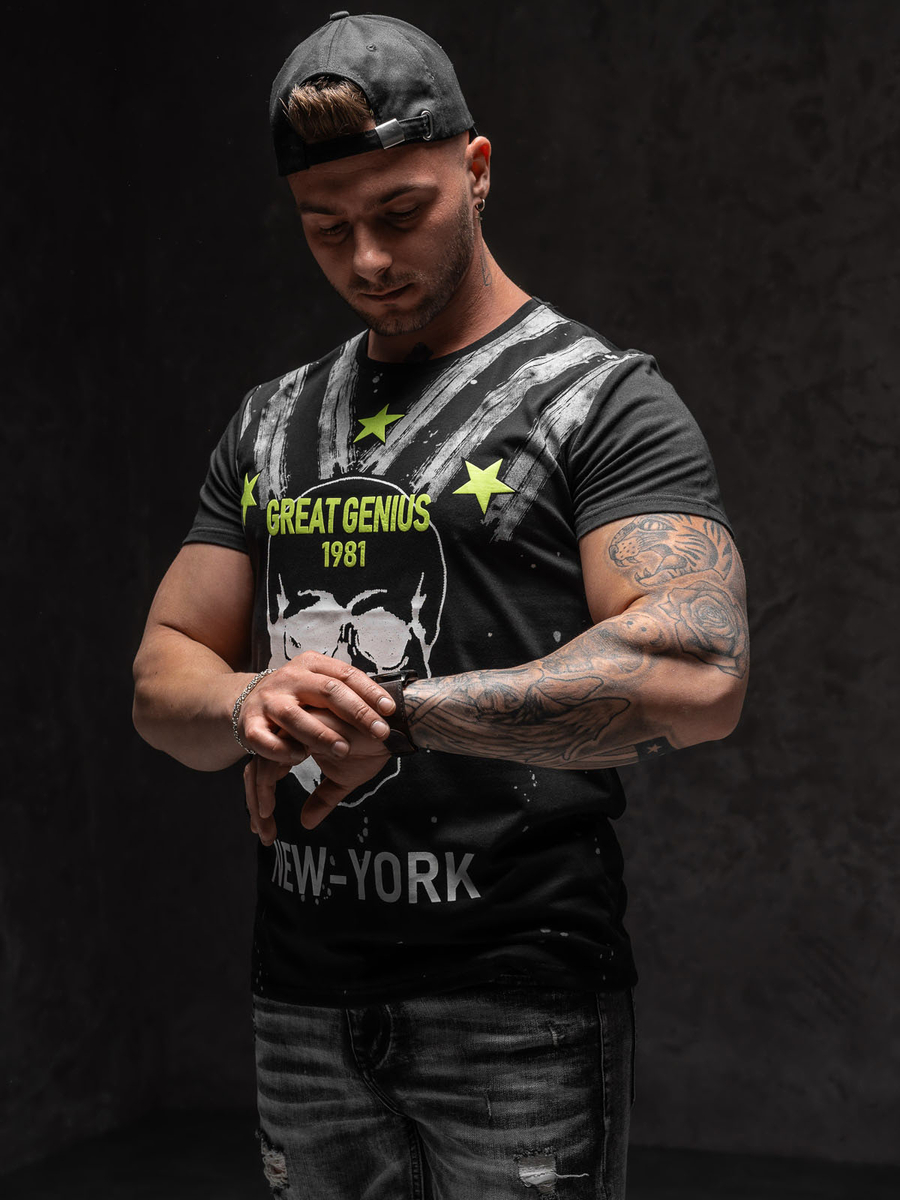A felhasználók véleménye Mintás férfi póló fekete színben Bolf Y70006