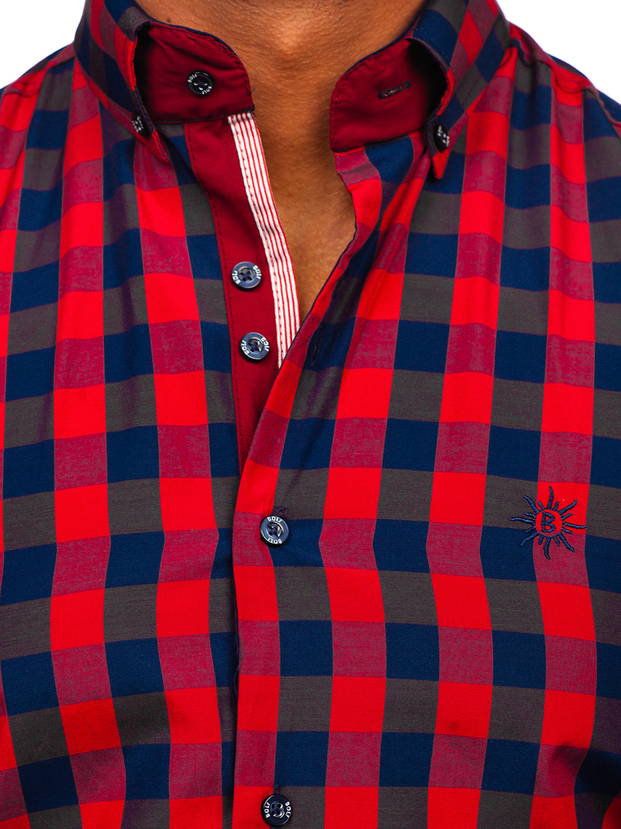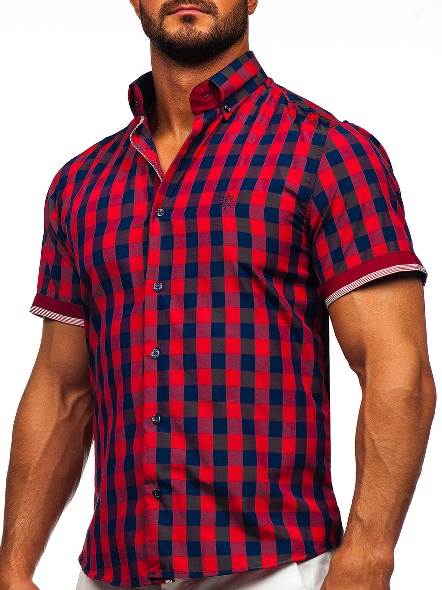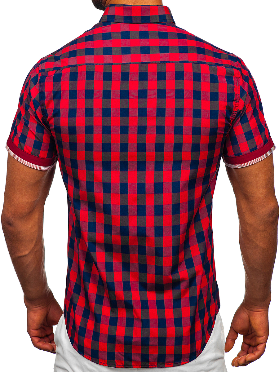 A felhasználók véleménye Kockás rövid ujjú férfiing bordó színben Bolf 4508