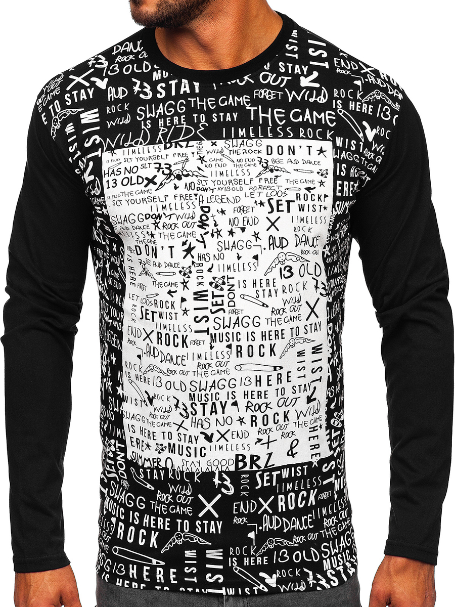 A felhasználók véleménye Férfi hosszú ujjú felső mintával fekete színben Bolf 1213