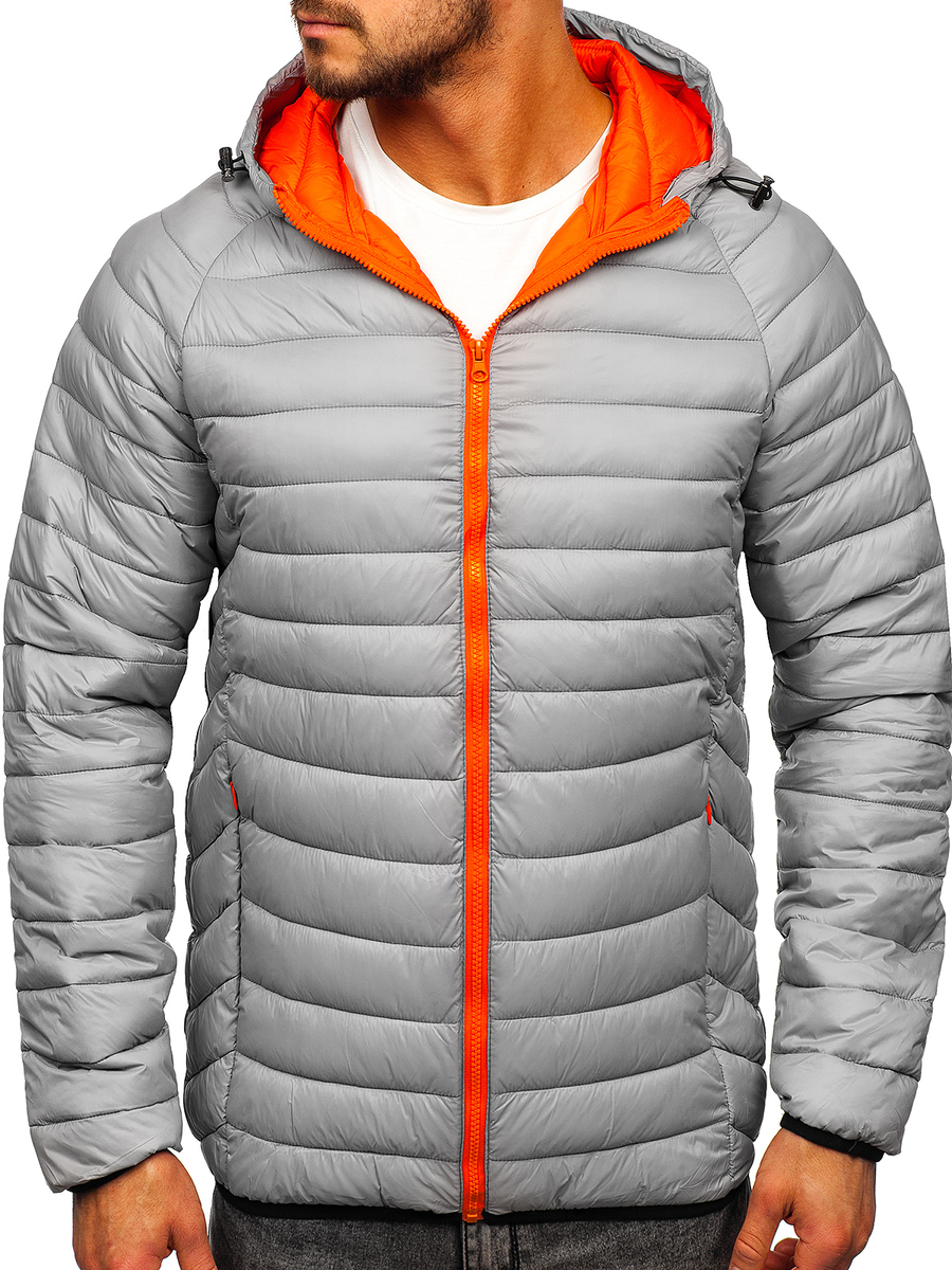 A felhasználók véleménye Steppelt átmeneti férfi dzseki kapucnival szürke színben Bolf 13022