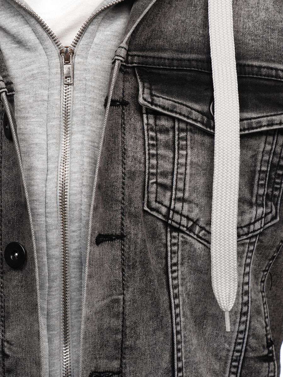 A felhasználók véleménye Férfi farmerdzseki kapucnival szürke színben Bolf 10350