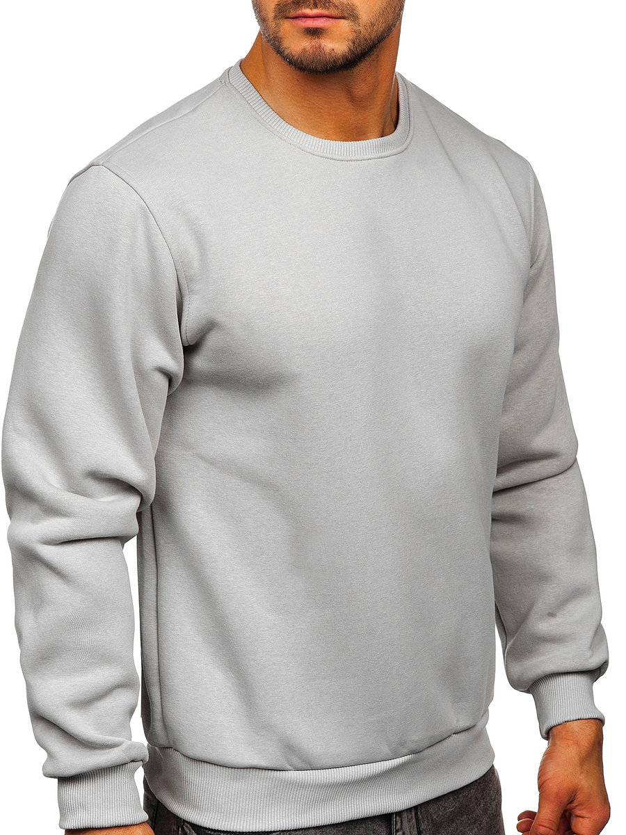 Szürke, kapucni nélküli férfi pulcsi -Bolf 2001- basic kategóriás ajánlatunk. Ez a modell számos, többé-kevésbé intenzív színben is kapható, így számtalan ruhával könnyen összeilleszthető. A pulcsikat kifejezetten a minimalista divatirányzatok rajongóinak számára ajánljuk. Minta nélküli, kényelmes, szépen varrott. Must have a férfi divatos ruhásszekrényében. Az egyszerű, klasszikus, érdekes színű fazonjának köszönhetően ez a pulcsimodell nagyszerűen kiegészít számos hétköznapi és streetes stilizációt. Az ujjak és a pulcsi alsó része széles passzéval ellátva. A termék kellemes tapintású és tartós melegítőanyagból készült.