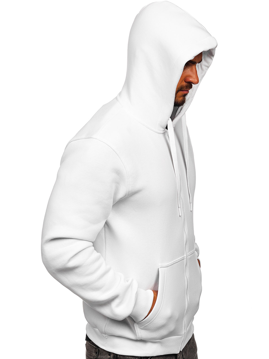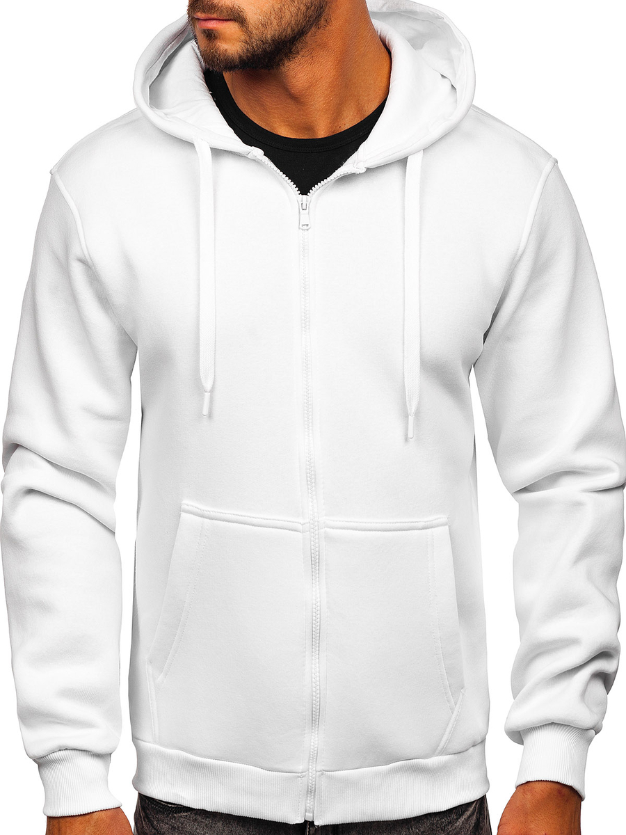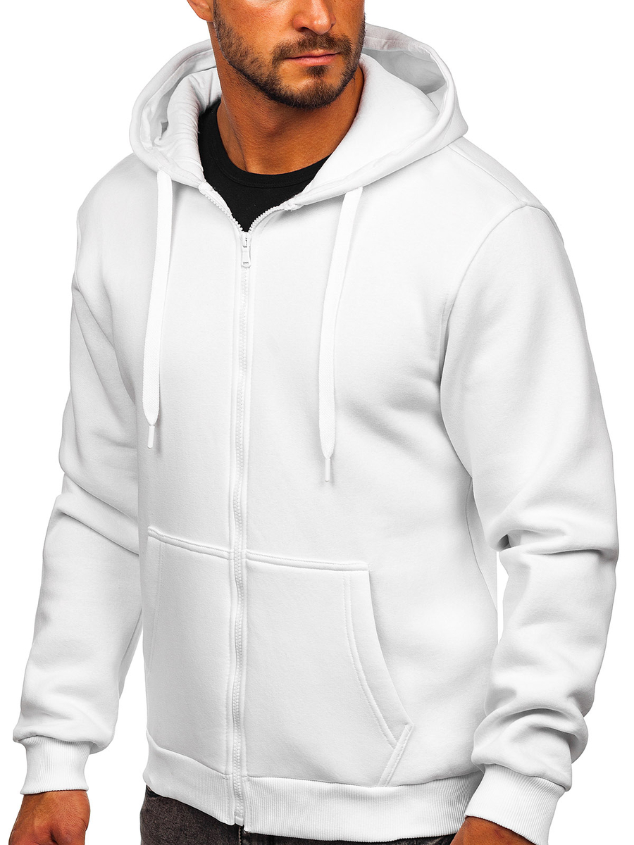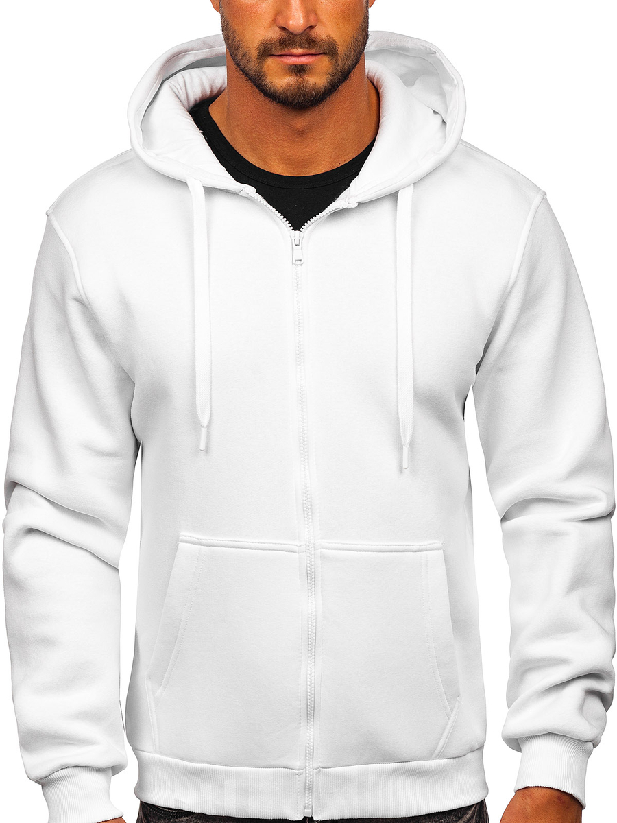 Fehér színű, cipzározható, férfi pulcsi kapucnival, Bolf 2018. Klasszikus szabású pulcsi, puha, kellemes tapintású melegítőanyagból készült. A termék több színben kapható, ami jellegzetessé teszi. Egyszínű, állítható kapucnival és két oldalsó, nem zárható zsebbel. A pulcsi alja és az ujjai erős passzéval vannak ellátva. A pulcsit elsősorban a minimalizmus és a kényelem kedvelőinek ajánljuk. Szépen varrott és kényelmes. Must have a férfi divatos ruhásszekrényében. Az egyszerű, klasszikus, érdekes színű fazonjának köszönhetően ez a pulcsimodell nagyszerűen kiegészít számos hétköznapi, streetes és sportos stilizációt. A nyitható, minta nélküli férfi pulcsi olyan ajánlat, amelyet érdemes egy-, vagy többféle színben is a ruhatárban tartani. A klasszikus feketétől a gránátkék és piros árnyalatokon át az extravagáns sárgaig, narancssárga vagy a rózsaszín színekig. A pulcsi minden évszakban és bármilyen körülmények között tökéletesen megállja a helyét.