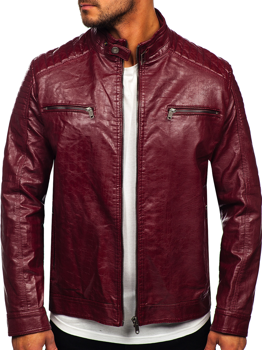 A felhasználók véleménye Férfi biker bőrdzseki bordó színben Bolf 2003
