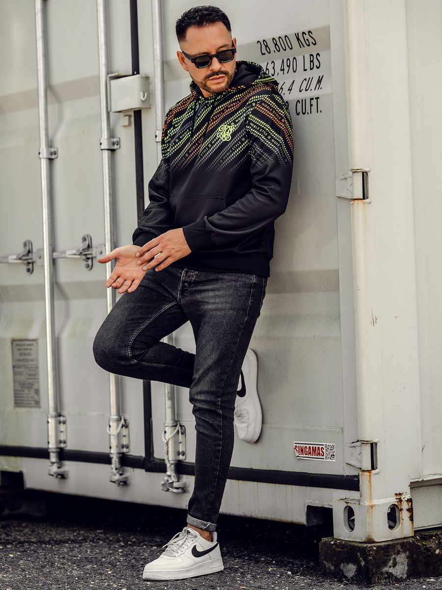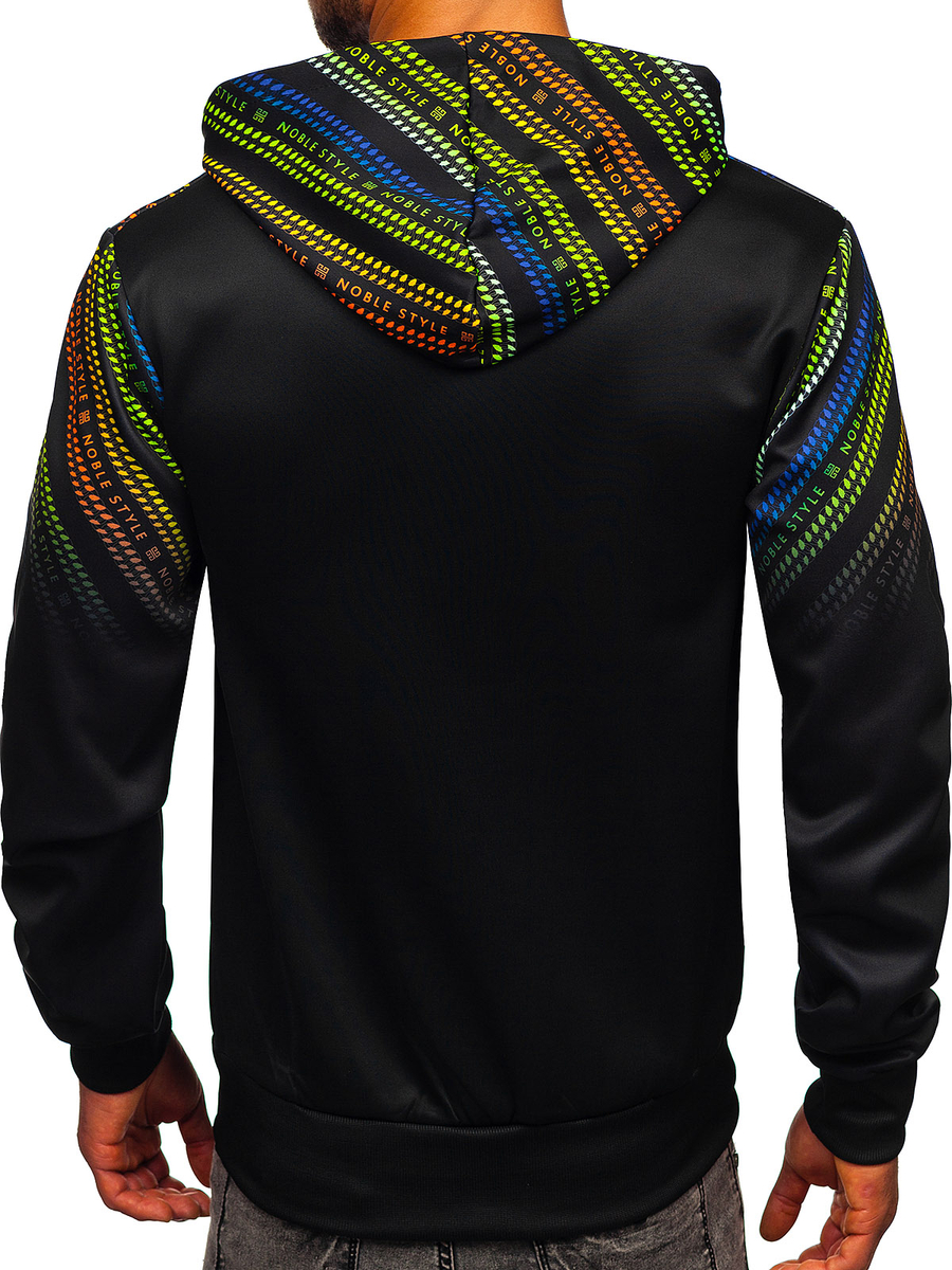 A felhasználók véleménye Mintás férfi pulcsi kapucnival fekete színben Bolf HM258