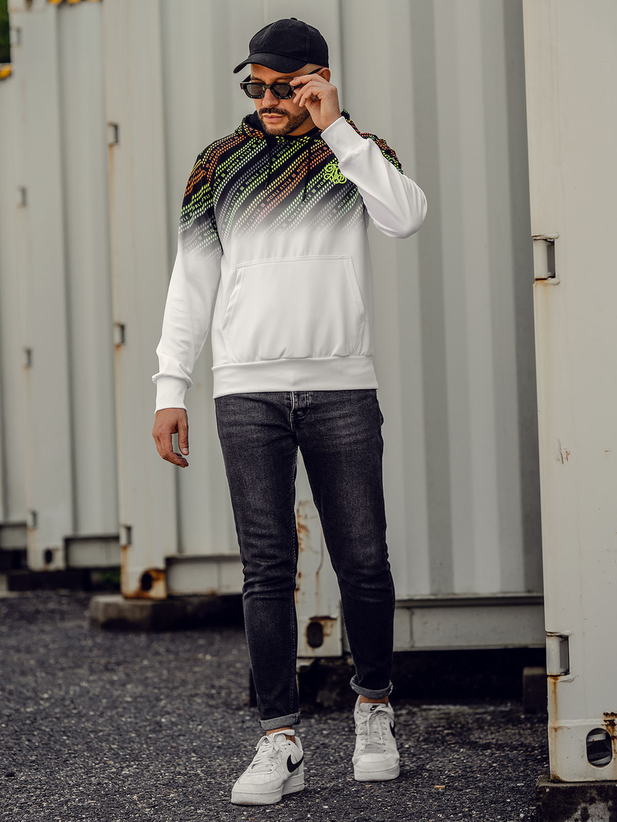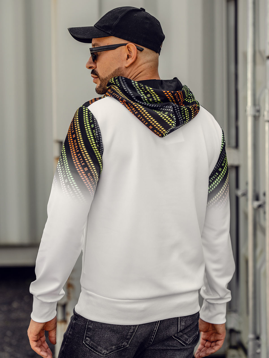 A felhasználók véleménye Mintás férfi pulcsi kapucnival fehér színben Bolf HM258