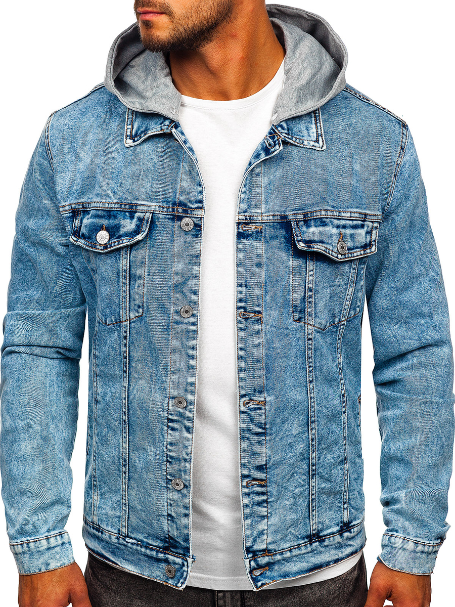 A felhasználók véleménye Férfi farmerdzseki kapucnival gránátkék színben Bolf HY958