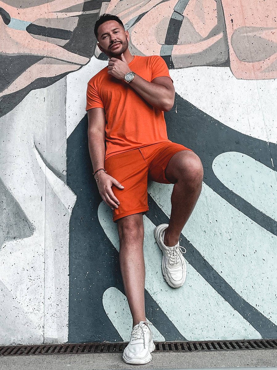 Narancssárga póló, Bolf 2005, klasszikus szabással és alkotóelemekkel. Ez a póló több fantaziadús színben is megtalálható. Mindenkin jól mutat, illeszkedik az alakhoz, kiemeli az izmokat. Kerek dekoltázzsál, mely vékony, azonos színű szegéllyel végződik. Basic típusú póló, nagyszerű alap különböző érdekes stilizációkhoz.