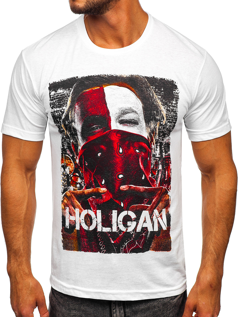 A felhasználók véleménye Fehér színű pamut férfi póló mintával Bolf CMR18