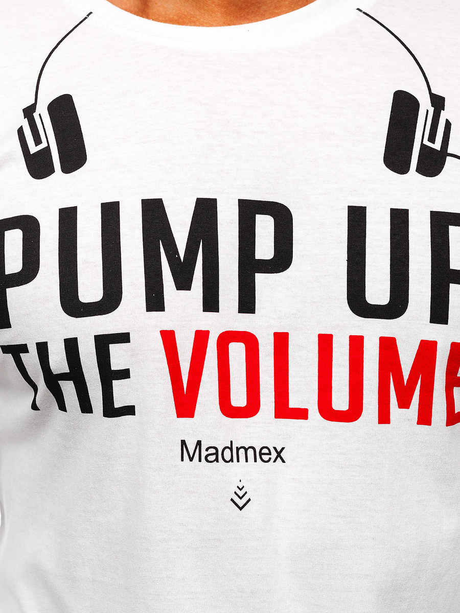 Fehér színű, hosszú ujjú Bolf felső divatos nyomattal. Klasszikus, pamut, szépen fekszik a férfi alakon. Fehér hosszú ujjú felső, viseld farmerral, chinóval, joggerrel. Viseld dzsekivel, vagy pulcsival.