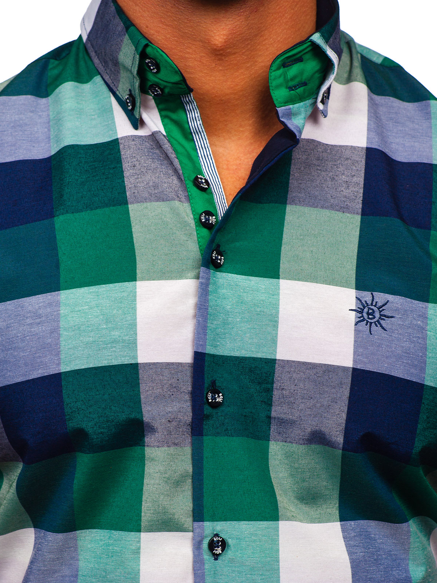Fantasztikus, rövid ujjú slim fit zöld Bolf ing kifejező kockával. Divatos gombos gallérral, kerekített alsó résszel, nagyszerűen kiemelik a férfi alakot. Zöld kockás ing jól mutat farmerral, farmer rövidnadrággal, vagy chino nadrággal.