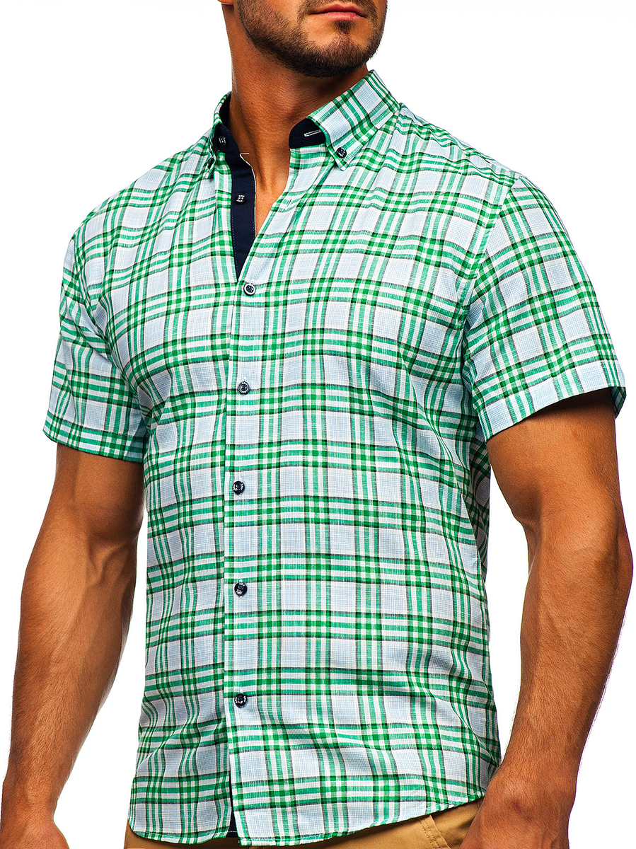A felhasználók véleménye Kockás rövid ujjú férfiing zöld színben Bolf 201501
