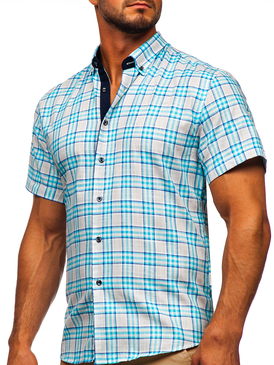 A felhasználók véleménye Kockás rövid ujjú férfiing égszínkék színben Bolf 201501