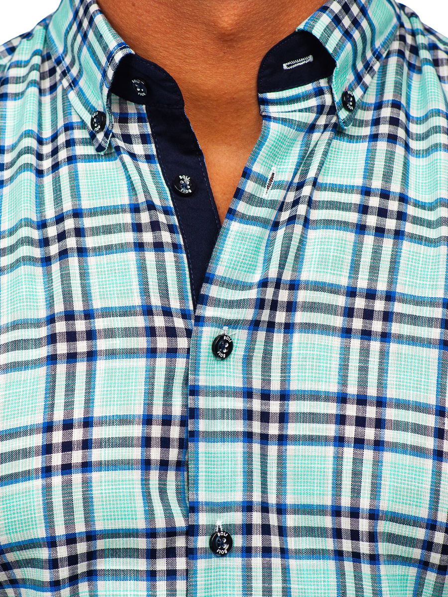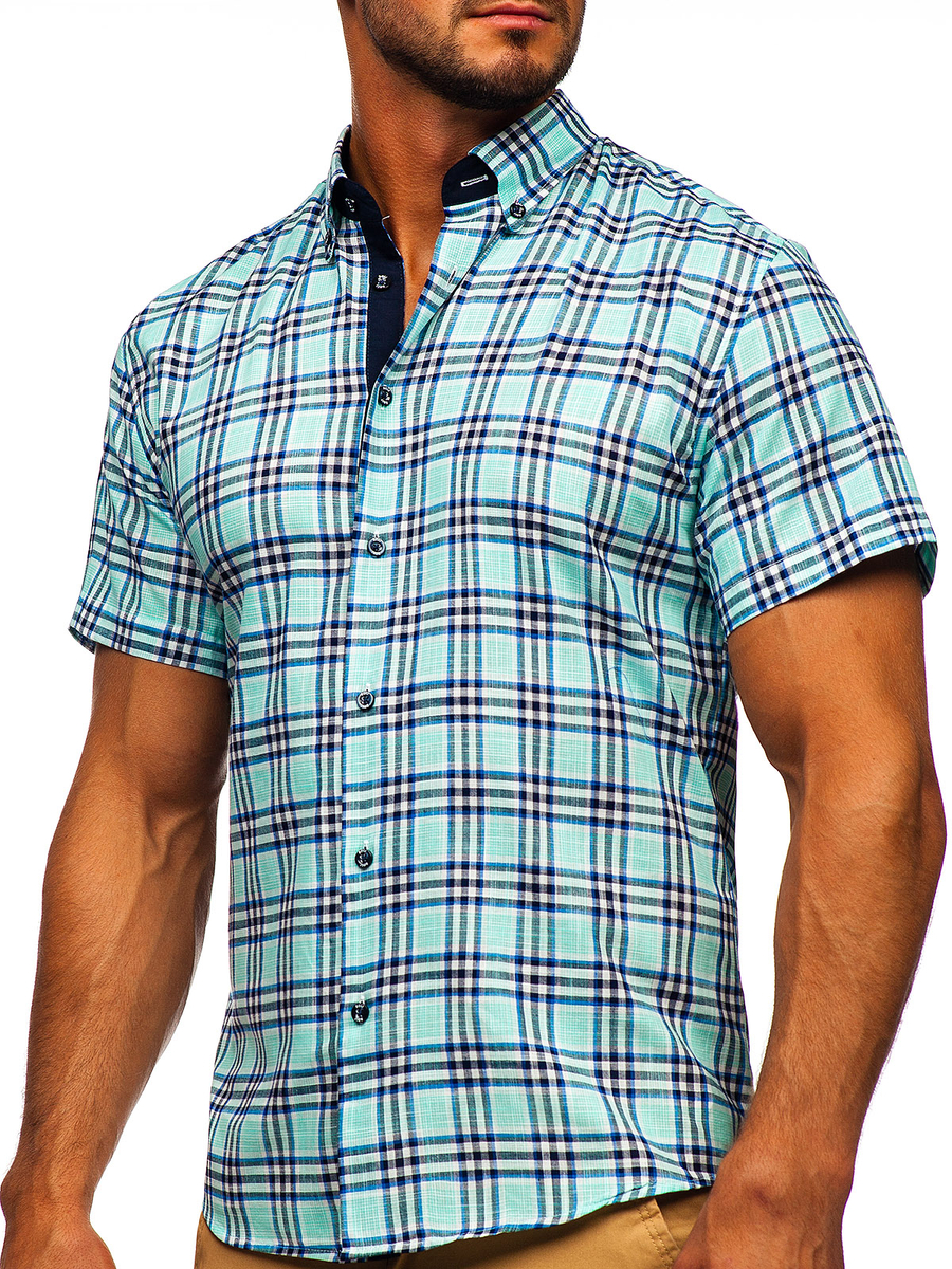 A felhasználók véleménye Kockás rövid ujjú férfiing mentazöld színben Bolf 201501