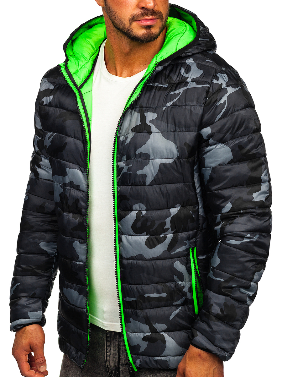 Fekete-zöld színű, terepmintás, téli férfi sportdzseki -Bolf SM83- tökéletes az őszi és a téli szezonra. ipzározható termék, kapucnival egybe szabott állógallérral rendelkezik, mely állítható. Dzseki fekete-zöld színben, rendkívül divatos terepmintával. Steppeléssel a teljes felületen, mely sportos jellemet biztosít. Két praktikus, cipzározható külső zsebbel rendelkezik. Az alja és az ujjai rugalmas szalaggal vannak ellátva, ami stílusossá teszi a dzsekit. 100%-os poliészterből készült. Átmeneti dzseki , a a sportos stílus kedvelőinek. Tökéletesen megállja a helyét az edzésen, a hosszú őszi sétán vagy a hegyi kiránduláson. Ideálisan passzol melegítőnadrághoz, farmerhoz és pólóhoz.