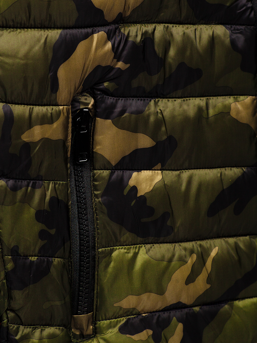 Zöld színű, steppelt, terepmintás, téli férfi dzseki -Bolf SM80- tökéletes az őszi és a téli szezonra. A termék cipzáros, álló típusú a gallér és passzésak az ujjak. Terepmintás dzseki, steppeléssel a teljes felületen, mely különleges, divatos jellemet biztosít. 100% poliészterből készült. Praktikus zsebekkel rendelkezik: két cipzározható külső zsebbel és két belső, zár nélküli zsebbel. Az univerzalitásnak köszönhetően nagyszerűen mutat különféle stilizációkban. Megfelelő sétára, baráti találkozásra vagy városi kiruccanásra. Ez a dzseki tökéletes szettet alkot chinóval és hosszú ujjú felsővel.