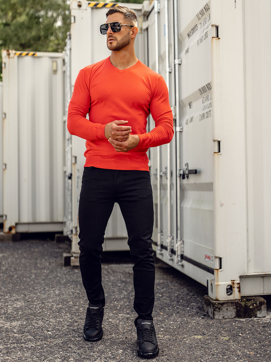 A felhasználók véleménye V-nyakú férfi pulóver narancssárga színben Bolf YY03