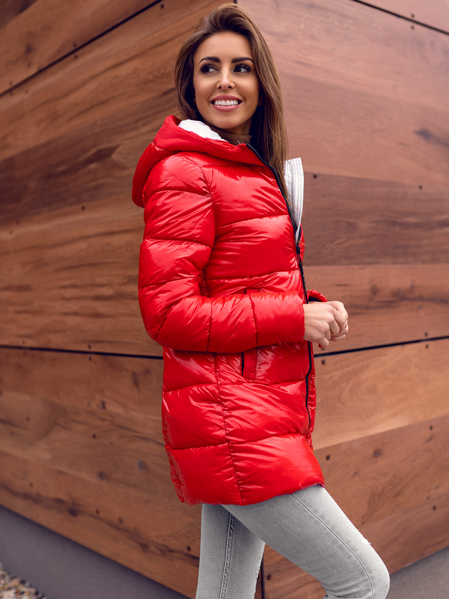 A felhasználók véleménye Steppelt téli női dzseki kapucnival piros színben Bolf B9545