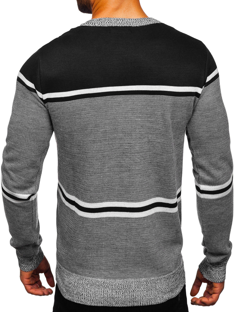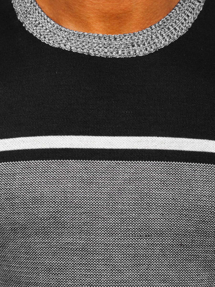 Fekete színű férfi pulóver -Bolf 6300- egy casual stílusú pulóver. Finom, kerek dekoltázzsál, mely szűkítővel végződik. Az alján és az ujjain is szűkítők vannak, kihangsúlyozva ezzel alkalmi jellegét. A szűkítőnek köszönhetően a pulóver jól idomul az alakhoz. Az idomuló szabásának köszönhetően benne mindenki különlegesnek látszik. Karakteressé a divatos csíkok teszik. A termék finom, kellemes tapintású anyagból készült, mely nagyszerűen fekszik az alakon. Az anyaga: 65% gyapjú, 30% akril és 5% elasztán. Viseld munkában, iskolában, randin, sétán, vagy baráti találkozásokkor – tökéletesen mutat bármilyen alkalom során. Klasszikus pulóver, nagyszerűen mutat farmerral és bőrdzsekivel, ideális stilizációt biztosít a baráti találkozásra. Jól párosítható joggerrel és pulcsival, egyúttal létrehozva a laza stilizációt.