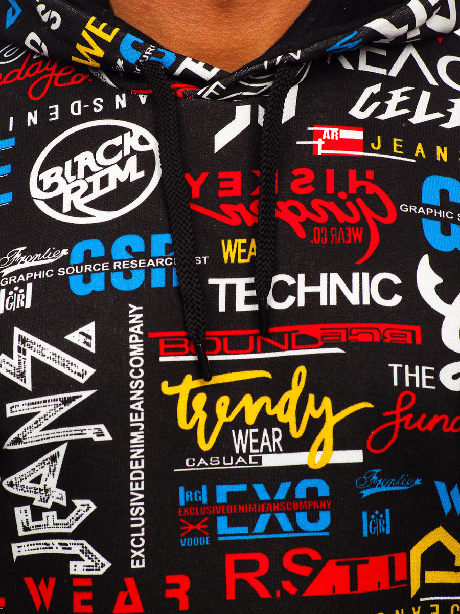 Fekete színű férfi pulcsi nyomattal és kapucnival -Bolf 141000-ideálisan beválik őszi és tavaszi stilizációkban. Állítható, kétrétegű kapucnival és két praktikus, oldalsó zsebbel rendelkezik. Az ujjak és az alja szűkítővel végződik. 70% pamutból és 30% poliészterből készült. Ez a modell gazdag, különleges és egyedi színválasztékával tűnik ki. A sokszínű, dekoratív nyomatoknak köszönhetően nem találsz hozzá hasonlót! Egy pulcsi kapucnival, amely bármely évszakban és szinte bármilyen körülmények között megállja a helyét: jogging, séta, városi kiruccanás. Nagyon kellemes a tapintása, tökéletes a hűvösebb napokra. Viseld farmerral vagy joggerrel. Nagyszerűen mutat még átmeneti dzsekivel vagy bomber dzsekivel.