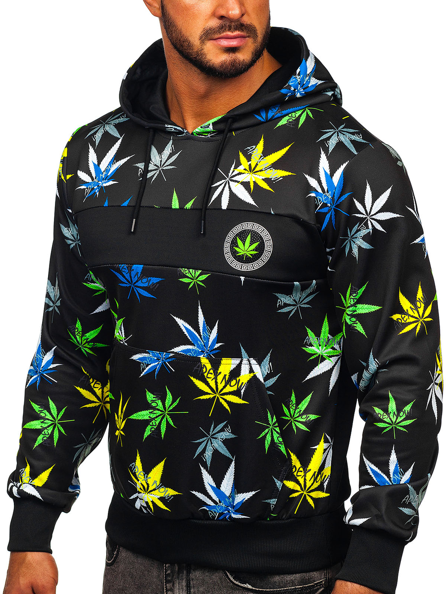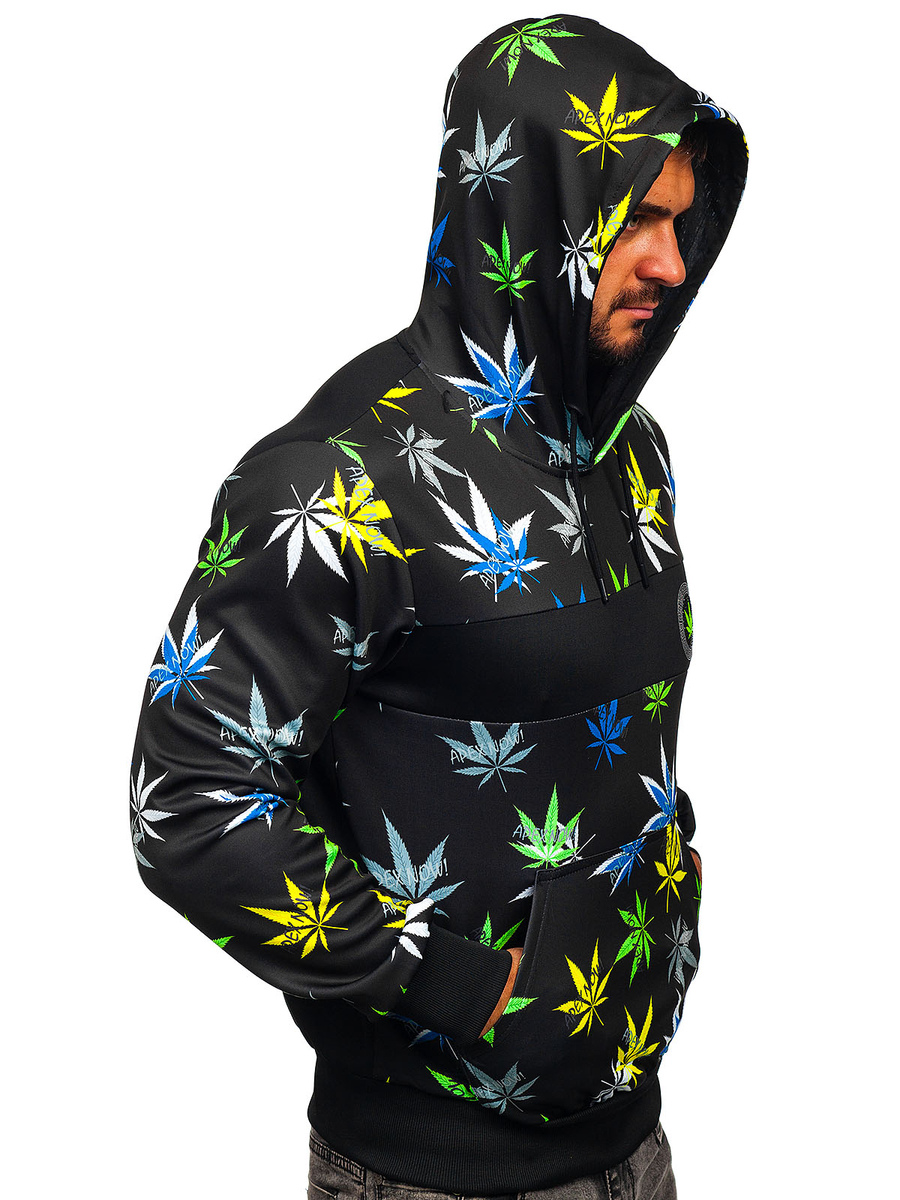 A felhasználók véleménye Fekete színű férfi pulcsi nyomattal és kapucnival Bolf HM517