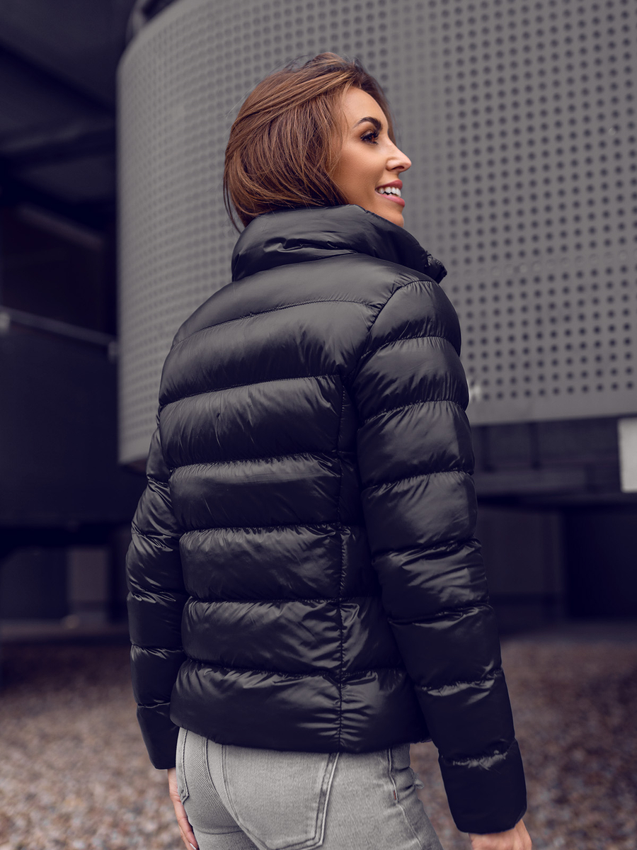 Fekete színű, steppelt, kapucni nélküli, téli női dzseki Bolf 23061, ideális a hűvösebb napokra. A dzseki jellegzetes tulajdonsága a vízszintes steppelés a teljes felületén. Az egyszerű szabás, az állógallér és a szűkítők az ujjakon a sportos lookot biztosítanak. Két praktikus, oldalsó, cipzározható zsebbel rendelkezik. 100%-ban nejlon anyagból készült termék, ami rugalmassá és kényelmessé teszi őt, minden alakon jól mutat. Időtálló szabásnak köszönhetően a dzseki több szezonon keresztül viselhető. A széles színválasztéknak köszönhetően különféle stilizációkban is megállja a helyét. Téli dzseki, ideális a sportos stilizációkhoz, melyekben nagyszerűen mutatmelegítőnadrággal és pólóval. Remekül mutat párban farmerral vagy leggingssel.