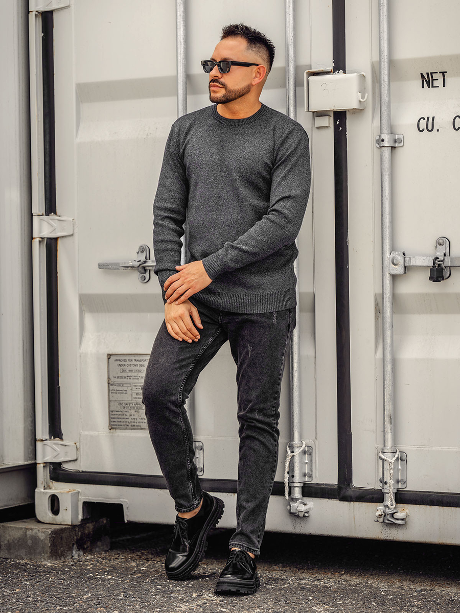 Fekete színű férfi pulóver -Bolf S8165- egyszerű, klasszikus szabású termék. Kerek dekoltázzsal rendelkezik, mely passzés. Az alsó rész és az ujjak szűkítővel vannak ellátva, ennek köszönhetően a pulóver tökéletesen idomul az alakhoz, mindemellett meglepően kényelmes. 35% pamutból, 60% poliészterből és 5% elasztánból készült. Ez a modell három színben kapható, ennek köszönhetően mindenki talál ideálisat magának. A kifinomult színnek köszönhetően a pulóver könnyen párosítható világosabb színű, vagy akár sötét színű ruhákkal is. Viseld munkába, iskolába, sétára, vagy baráti találkozásra – tökéletes minden alkalomra. Klasszikus pulóver, nagyszerűen mutat chinóval és bőrdzsekivel, ideális stilizációt biztosít a baráti találkozásra. Jól párosítható joggerrel és bomber dzsekivel, egyúttal létrehozva a laza stilizációt egy esti sétára.
