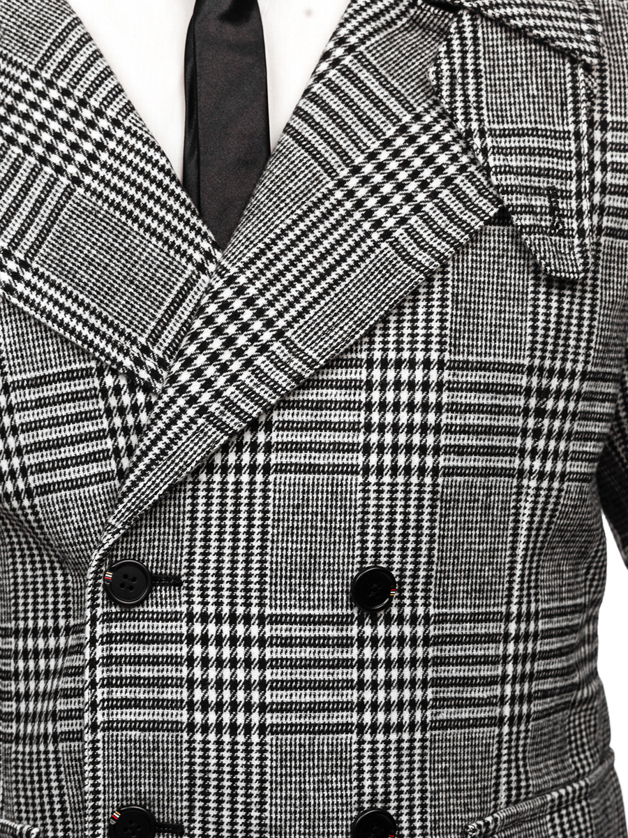 - Bélelt, kétsoros kabát kockás mintával.