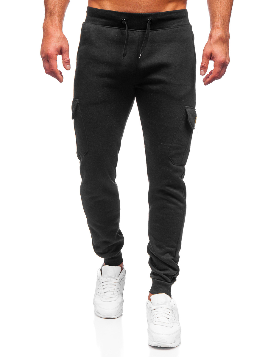 Fekete színű, katonai férfi melegítőnadrág -Bolf JX8709- nagyszerű ajánlat azoknak a férfiaknak, akik értékelik a kényelmet. Nadrág kifinomult színben. Derékban erős szűkítővel és megkötővel állítható, nagyszerűen alakra szabott. Két praktikus oldalsó, zár nélküli zsebbel. Egy olyan tárhelyet biztosítanak, ahol a kulcsokat, a pénztárcát vagy a telefont is tarthatod. Más apró tárgyak az oldalsó zsebekben tárolhatók. Oldalsó zsebek a comboknál is találhatók, melyek stílusos nyomatokkal vannak díszítve. A szárak divatos passzéval vannak ellátva, ennek köszönhetően nagyszerűen passzol az alakhoz. Kényelmes és tökéletesen véd a hideg elől akár a leghidegebb napokon.