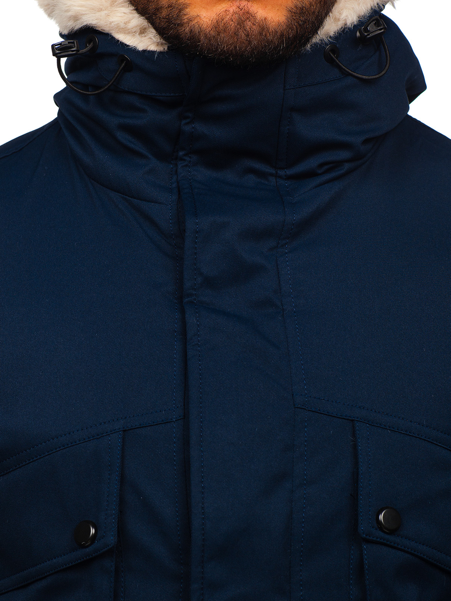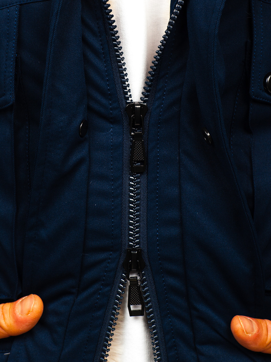 Gránátkék színű, téli férfi parka dzseki -Bolf M115- tökéletes a téli szezonra. Cipzározható és patentos termék. Az ujjai belülről passzésak, ennek köszönhetően jól idomul az alakhoz és véd a hideg elől. Állógallérral, bélelt kapucnival, mely tökéletesen véd a szél és az eső elől. Az idomuló és egyenes szabásának köszönhetően benne mindenki különlegesnek látszik. A dzseki hat praktikus zsebbel rendelkezik. Négy külső, patentos zsebbel és két belső, nem zárható zsebbel. Magas minőségű anyagból készült dzseki, ennek köszönhetően kellemes a tapintása és nagyon kényelmes. 100% poliészterből készült. Az univerzalitásnak köszönhetően nagyszerűen mutat különféle stilizációkban. Megfelelő sétára, baráti találkozásra vagy városi kiruccanásra. Ez a dzseki tökéletes párosítást alkot chinóval és hosszú ujjú felsővel.