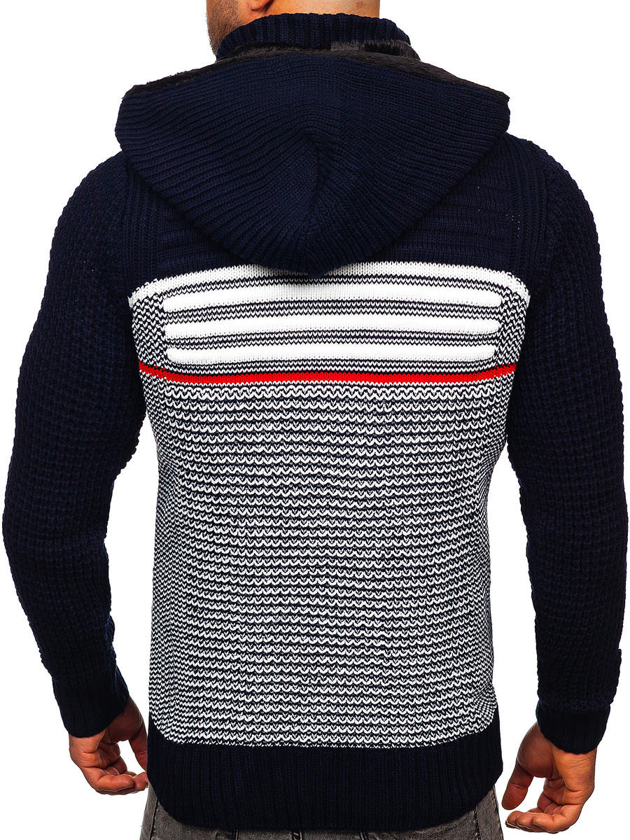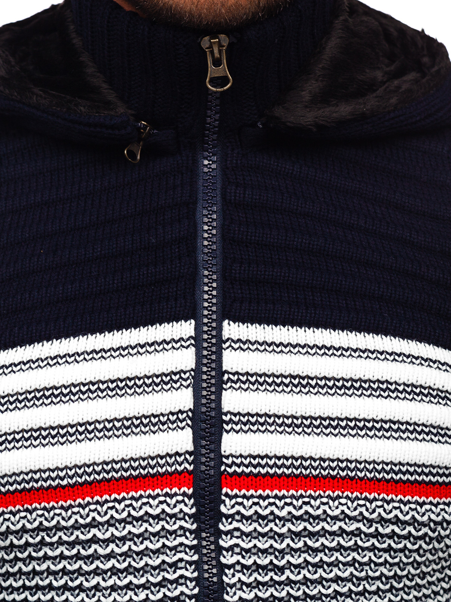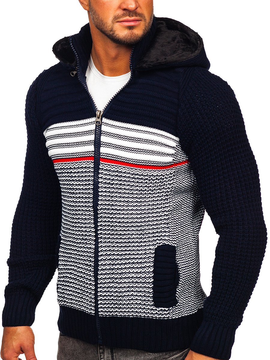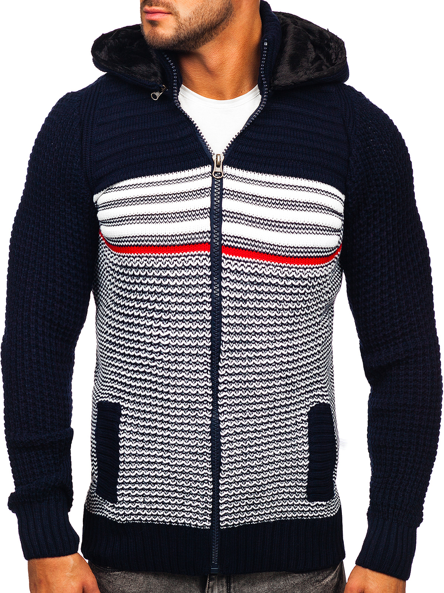 Vastag, nyitható, gránátkék színű férfi pulóver/dzseki kapucnival -Bolf 2048- klasszikus szabású, cipzározható. Három színben kapható. Az alsó rész és az ujjak szűkítővel vannak ellátva, ennek köszönhetően a pulóver tökéletesen idomul minden alakhoz. Kellemes tapintású az anyaga, kényelmet biztosít viselés közben. A termék 70% akrilból és 30% gyapjúból készült. Ez a modell praktikus, levehető kapucnival és két oldalsó zsebbel rendelkezik.A szabása lehetővé teszi számos rendkívüli stilizáció létrehozását. A munkába vagy a családi találkozón is viselhető. Örvendeztesd meg rokonaid az elegáns megjelenéseddel, ingben és chinóban. Hogyha értékeled a lazább stilizációkat, akkor párosíthatod a pulóvert pólóval és farmerral is.
