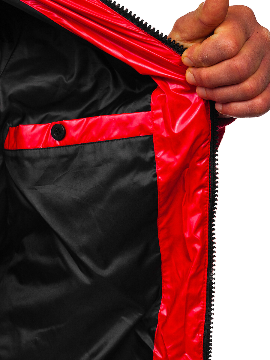 A felhasználók véleménye Átmeneti steppelt férfi sportdzseki piros színben Bolf 2143